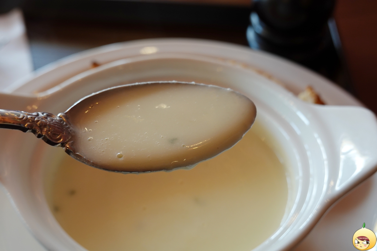 감자수프를 주문하기 전에 고민을 많이 했다. 왜냐하면, 양송이나 새우, 양파수프와 달리 감자수프를 그리 좋아하지 않기 때문이다. 감자는 튀김이나 전처럼 기름을 만나야지 우유와 버터는 상상조차 한 적이 없다. 그런데 로코코무드의 시그니처 메뉴라서 주문을 했는데, 안 먹었으면 큰 일 날 뻔했다.