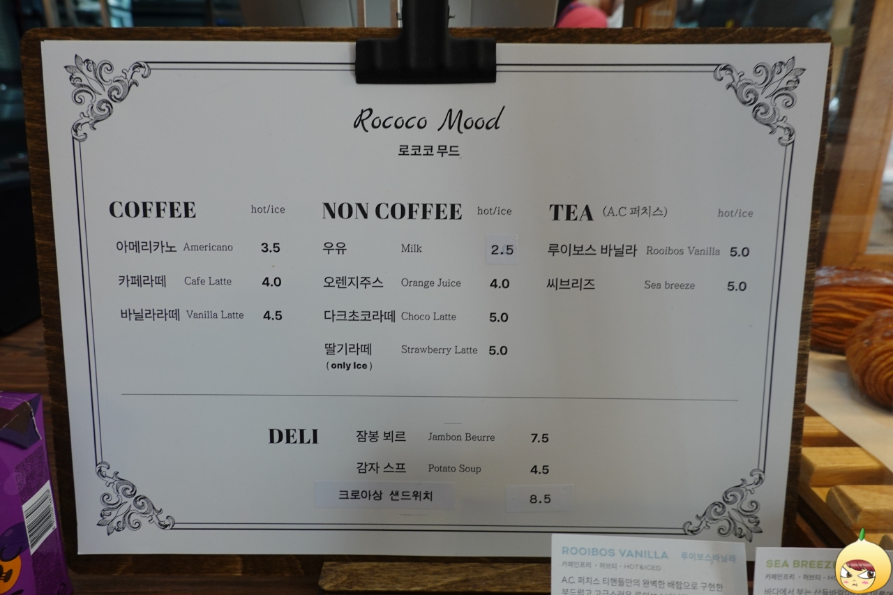 빵도 그러하더니, 음료도 메뉴판이 단출하다. 어차피 얼음 동동 아메리카노(3,500원)만 마시니 많고 적음은 그리 중요하지 않다. 게다가 궁금했던 프릳츠원두이니 더더욱 아니 마실 수 없다. 주출몰지역에 프릳츠 도화점을 두고 로코코무드에서 커피를 마신다는 거, 안 비밀이다.