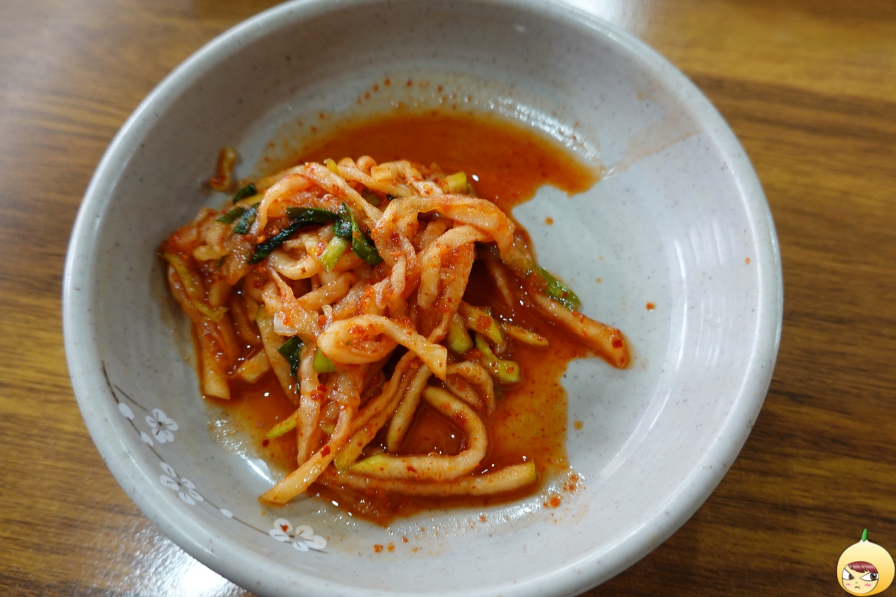 물미역무침인가? 미역은 국과 줄기볶음만 좋아할 뿐 나머지는 그다지 좋아하지 않는다. 그러므로 덜 익었지만 통으로 나온 배추김치와 알맞게 잘 익은 무생채만 공략했다. 참, 반찬은 리필이 가능한데, 무생채만 추가했다.
