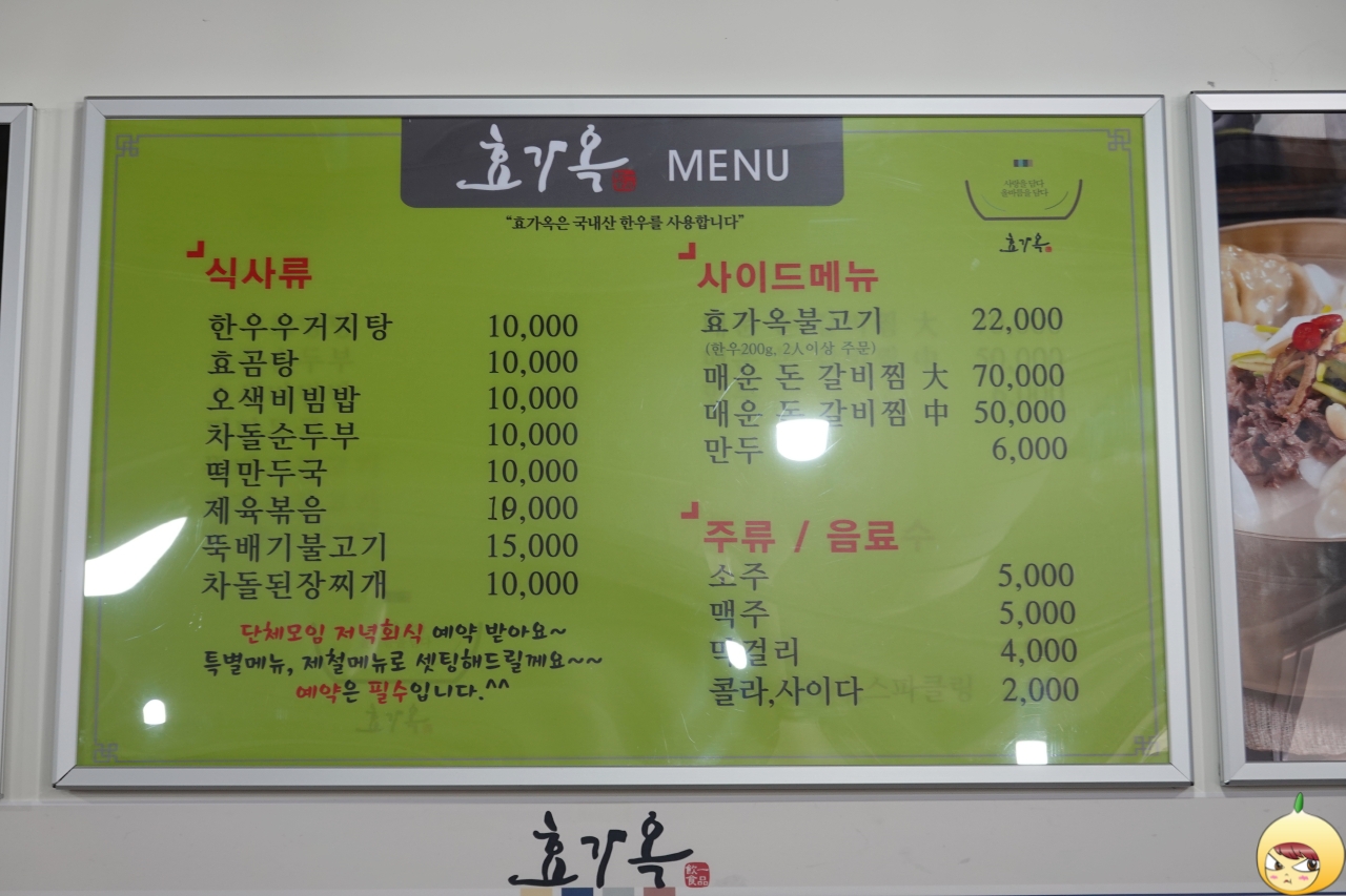 자고로 사이드 메뉴는 메인을 뒷받침하는 저렴한 가격대의 메뉴로 알고 있는데, 효가옥은 전혀 그렇지 않다. 불고기에 갈비찜을 사이드로 먹기에는 겁나 과하다. 고로, 한우가 들어 있다는 한우우거지탕(10,000원)만 주문했다.