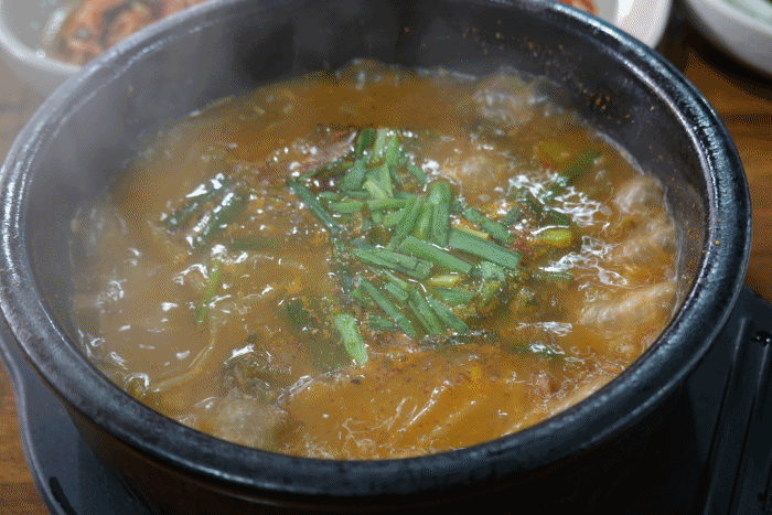 고기 양이 아쉬울 뿐, 맛은 맵거나 짜거나 어느 한쪽으로 치우치지 않고 조화롭다. 뚝배기에 나와서 처음에는 뜨겁지만, 밥을 말아서 후루룩 빠르게 먹기 좋다. 왜냐하면, 과하게 저작운동을 할 건더기가 없기 때문이다.