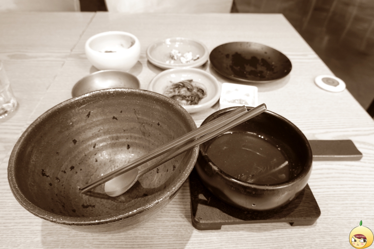 5년째 락희옥에서 멍게비빔밥을 먹다 보니, 진한 국물 속에 냉이가 들어 있다고 확신을 했다. 역시나 예상대로 또 다른 봄의 전령사 냉이가 진한 된장찌개 속에 숨어 있다. 시판용이 아니라 시골집에서 가져온 된장으로 끓인 듯한 된장찌개 같다. 때깔이 진한만큼 맛도 진하다(짜다)는 거, 안 비밀이다.