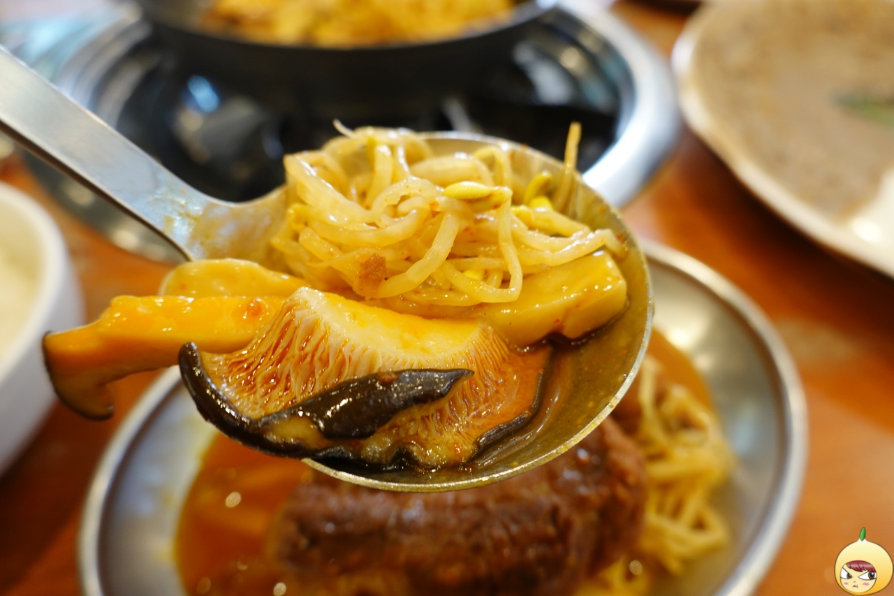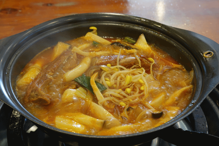 등갈비가 주인공인데, 모양새는 당면과 버섯이 주인공 같다. 끓기 시작하면 콩나물을 넣고 버섯과 당면이 익을 때까지 더 기다리면 된다. 매운등갈비라서 살짝 걱정을 했다. 그런데 바로 앞에서 막 끓고 있는데 매운 냄새가 나지 않는다. 신라면의 1.2배는 맵(순)둥이도 충분히 감당할 수 있나 보다.