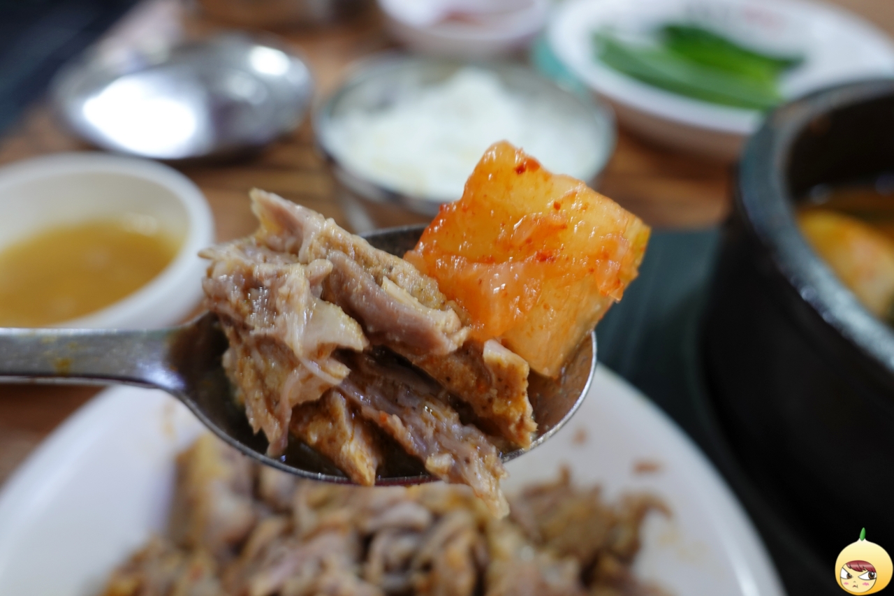 남아있던 뼈에도 고기가 많다. 이러니 바쁜 점심시간에도 사람들이 줄을 서서 기다리나 보다. 분리작업을 끝내고 밥은 2/3만 투하한다. 밥에 국물이 스며들도록 잠시 기다린 후, 본격적으로 폭풍흡입에 돌입한다. 1차를 하느라 뚝배기가 적당히 식어서 먹기 딱 좋은 온도가 됐다. 깍두기도 올리고 마늘종도 올리고 그렇게 먹다 보니 어느새 바닥이 보인다.