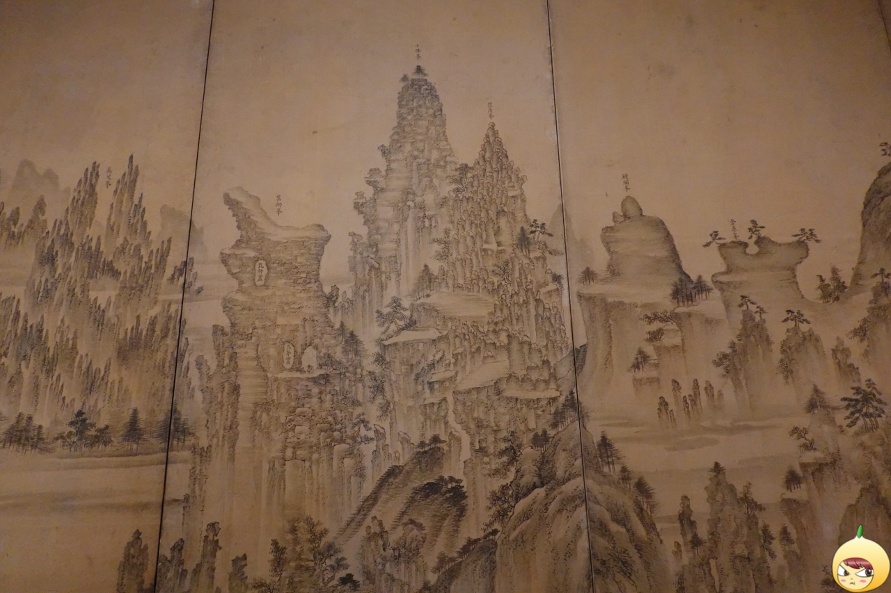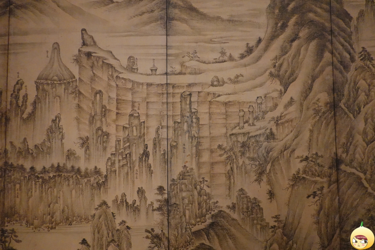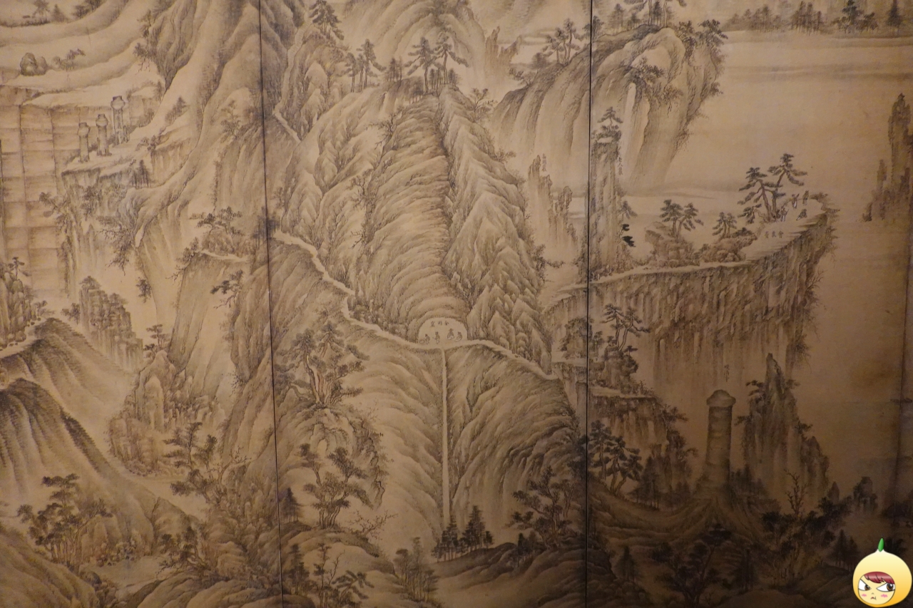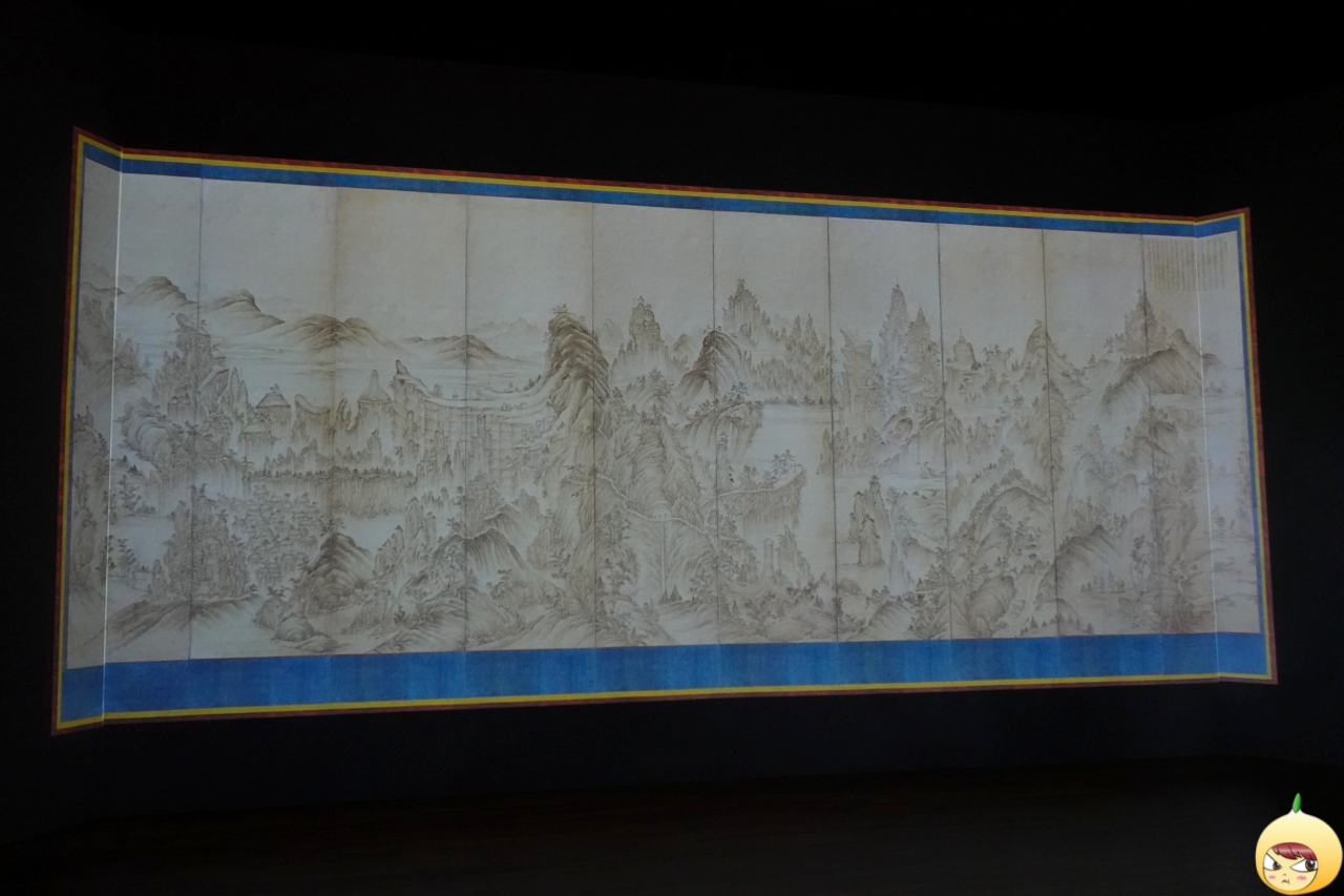 디지털 영상을 본 후, 다시 칠보산도병풍 앞에 섰다. 몰랐을 때는 그저 멀리서 바라봤는데, 좀 더 가까이 다가가 영상에서 본 곳들을 찾기 시작했다. 원본이라면 촬영을 못했을 텐데, 복제품이라서 다행이다.