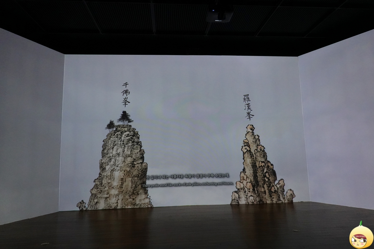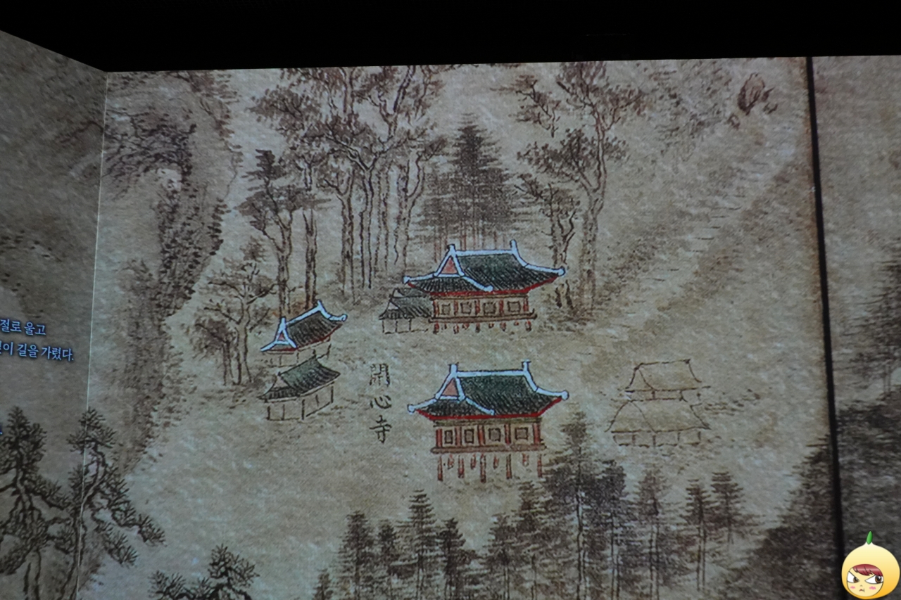 칠보산병풍을 지나 안으로 들어가니, 벽면 가득 칠보산도병풍 속 그림들이 나타났다. 마치 살아 있기라도 한 듯, 480여 년 전 임형수의 발길을 따라가며 칠보산의 다양한 경승을 감상하면 된다. "그때 윤세신과 함께 가지 못했던 나는 오늘에 이르러서야 다른 벗들과 함께 칠보산으로 향했다." 류준열의 목소리와 함께 영상은 시작된다.