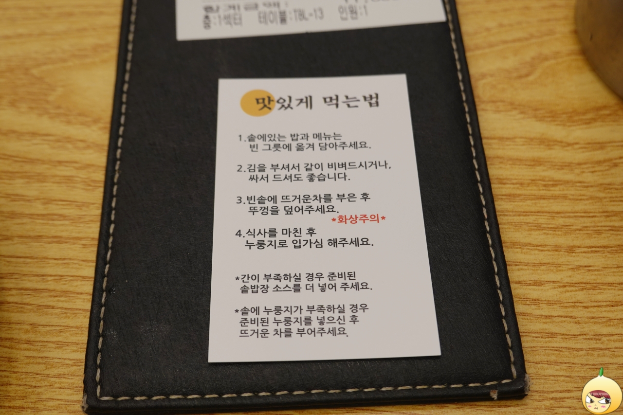 먹는 법을 따로 알려줄 필요가 있을까 했는데, 물어보는 사람들이 꽤 있나 보다. 요렇게 명함 크기로 제작해 나눠주니 솔직히 편하긴 하다. 외국인 손님도 많던데, 그럼 영어 버전도 있을까나?