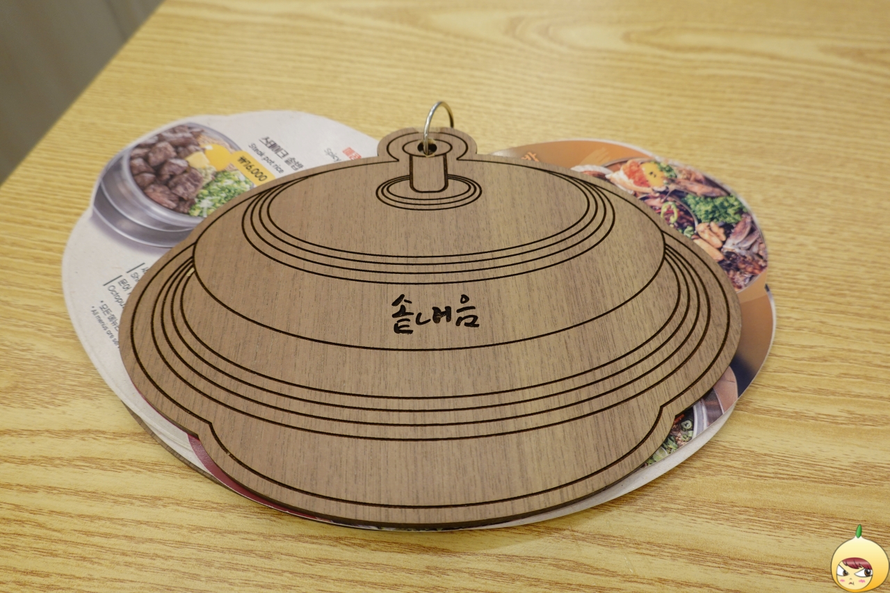 무지무지 좋아하는 닭목살이 들어있는 솥밥을 먹을 거야 했다가, 솔드아웃을 보는 순간 기운이 쏙 빠졌다. 자리에 앉아서, 가마솥 모양의 메뉴판을 보면서 뭐가 좋을까 고민을 하다가, 아는 맛이 무난할 듯싶어 가지솥밥(11,000원)을 주문했다.