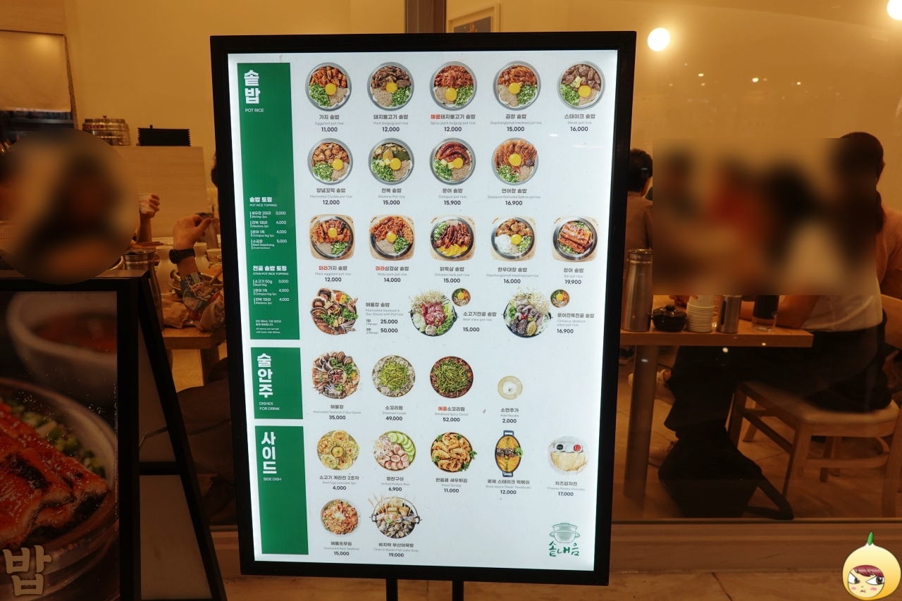 스타필드코엑스몰에는 먹을 곳이 많은데, 막상 먹으려고 하면 이상하게 갈 데가 없다. 이번에도 여기저기 헤매다 결국 '한국인은 밥심이지.' 하는 맘으로 솥내음으로 향했다. 사람이 많아서 내부 사진은 찍지 못했는데, 여기서도 훤히 볼 수 있으니 없어도 될 듯하다.