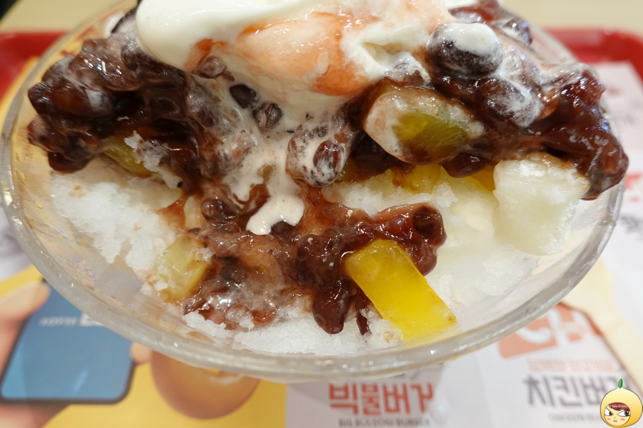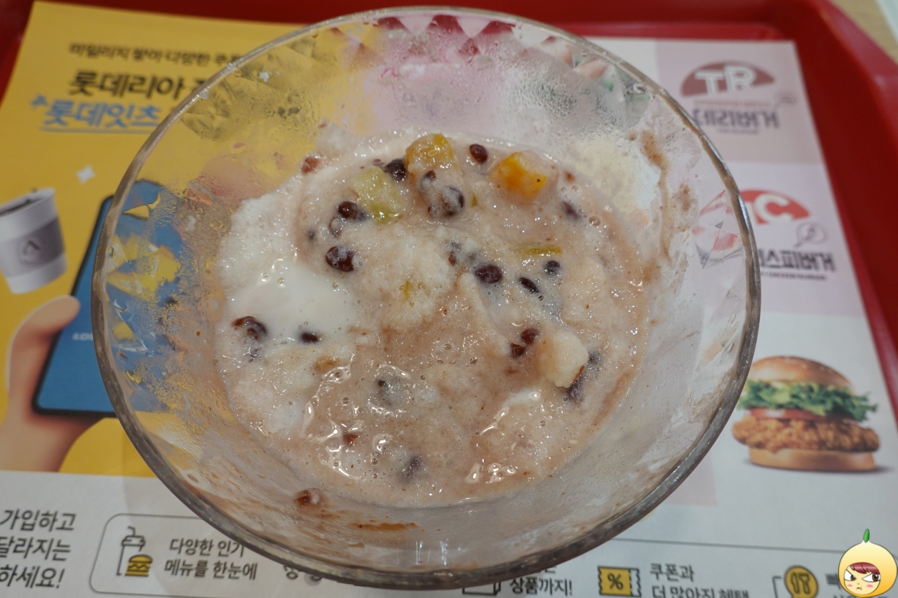 양도 맘에 드는데, 퀄리티가 가격대비 꽤나 괜찮다. 국내산 팥을 직접 삶아서 만들었다고 볼 수 없지만, 매우 몹시 달달하다. 팥빙수에서 팥을 가장 좋아하지 않는데, 롯데리아는 팥을 푸짐하게 주지 않았다. 그래서 더 맘에 들었는지 모르겠다.