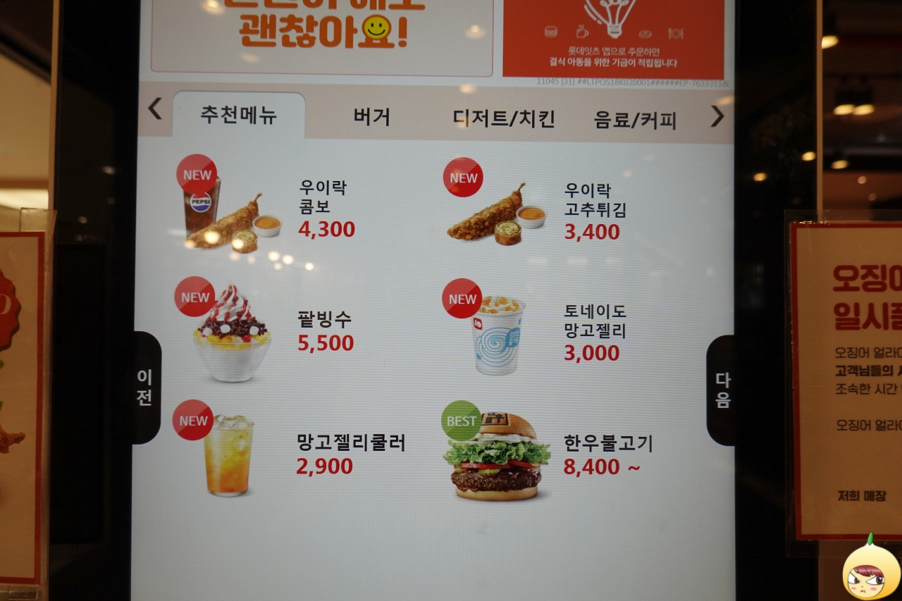 패스트푸드의 생명은 뭐니뭐니 해도 빠름일 텐데, 팥빙수는 주문 시 7~10분 정도 소요가 된다. 고로, 잠시 기다림의 시간을 갖는다. 햄버거 내음이 공간을 지배하고 있지만, 흔들리지 않는다. 롯데리아의 햄버거를 좋아하지 않으니깐.