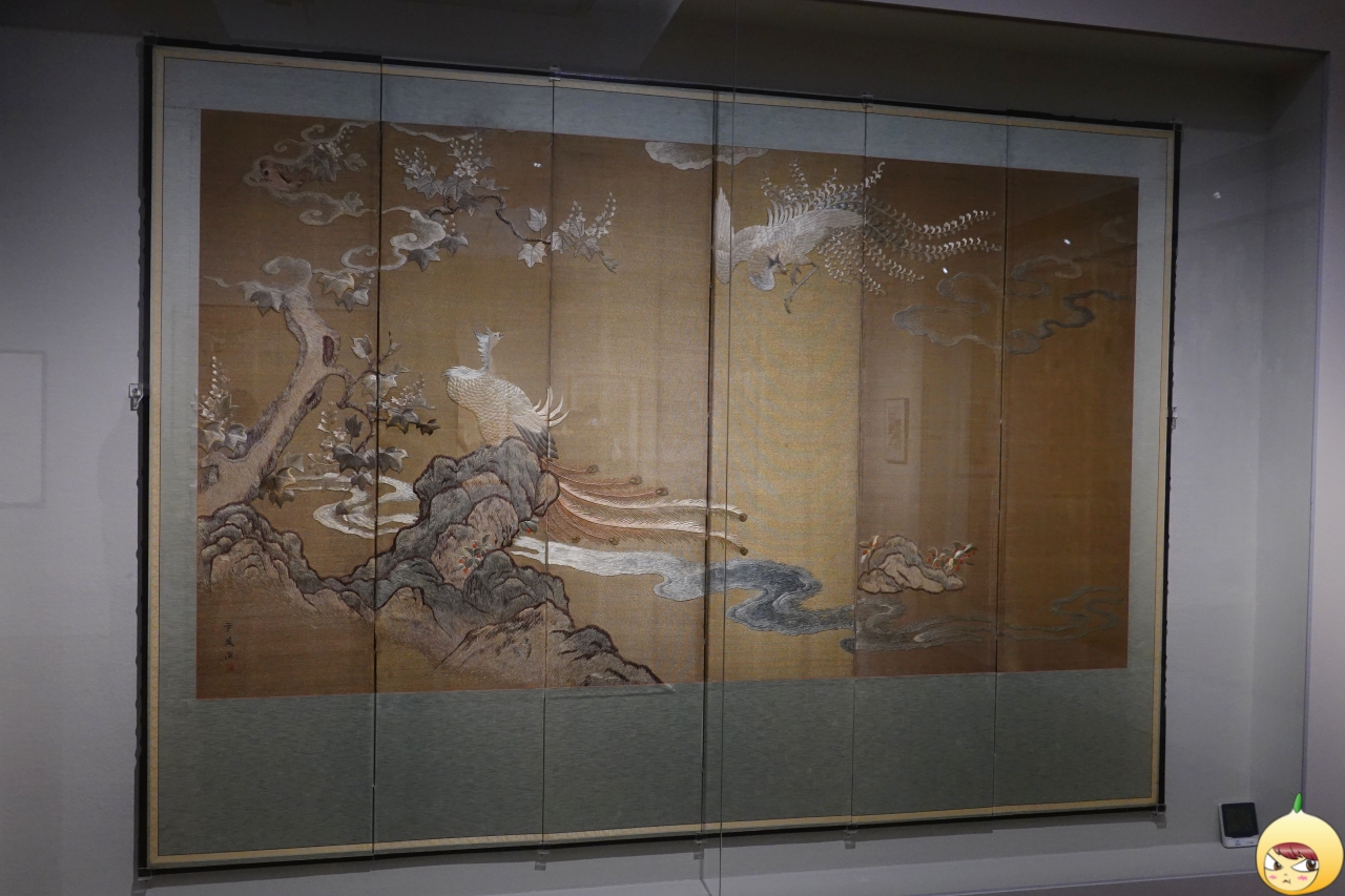 등꽃 아래 공작은 숙명여자고등보통학교 졸업반 학생들이 3년에 걸쳐 공동제작한 대형 자수 병풍이다. 흰 등나무 꽃이 탐스럽게 핀 아래 한 쌍의 공작이 노닐고 있는 장면을 섬세하게 수놓았다. (제2전시실에서 가장 감명있게 보고 또 본 작품)
