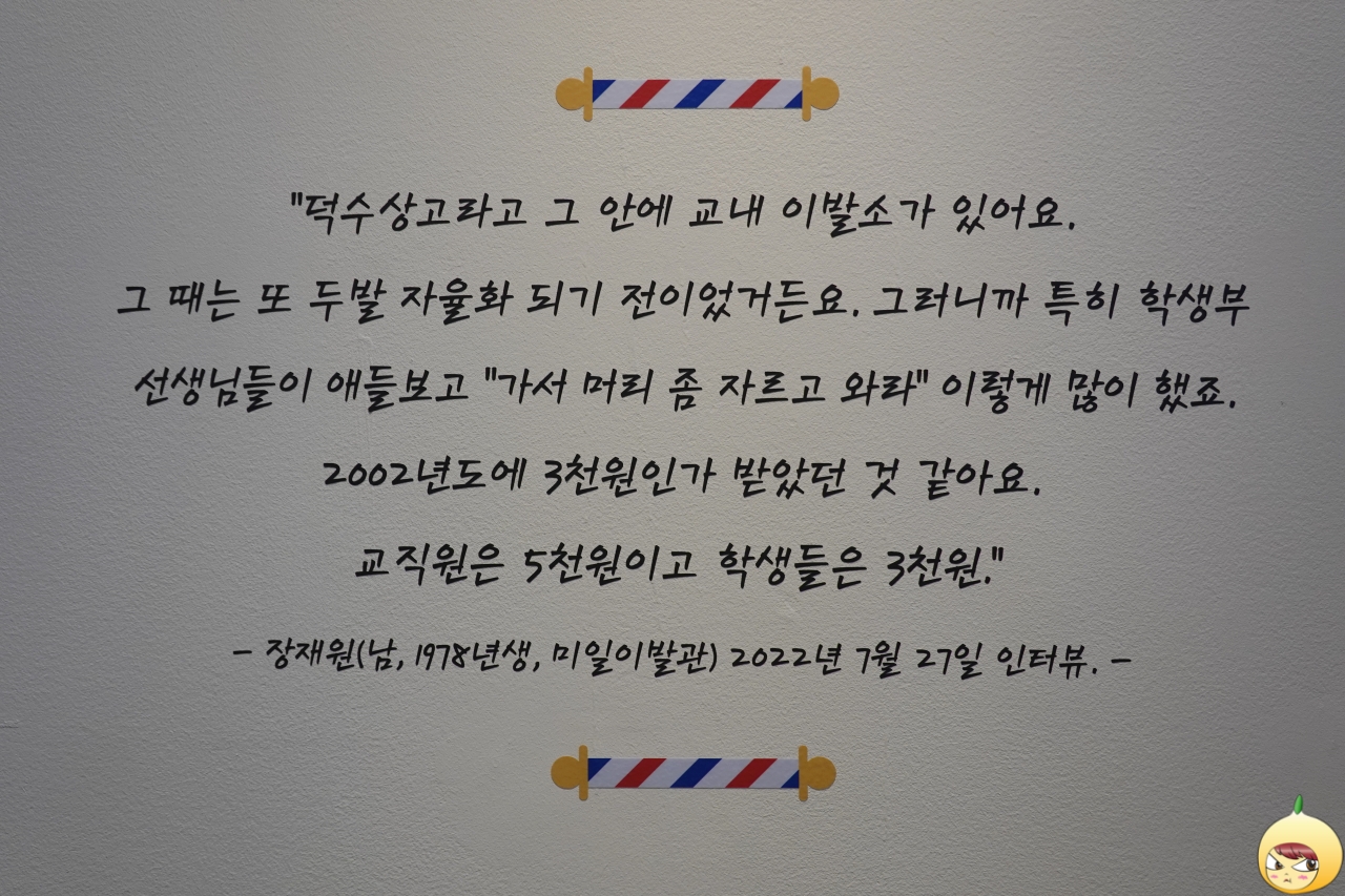 서울역사박물관에서 하는 기획전은 가능한 놓치지 않으려고 한다. 서울의 이용원은 기획전인 듯 특별전 같은 전시라고 할까나? 로비에서 하는 작은 전시회다. 시민들과 소통했던 서울의 이용원 이야기를 통해 일상 공간의 과거와 오늘을 되돌아보고, 미래를 상상하는 시간을 갖기 바란다고 안내문에 나와있다.