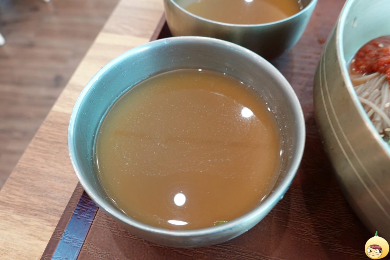 원래는 1개만 나오는데, 비빔으로 시작해 물로 마무리를 하고 싶어 하나를 더 달라고 했다. 육수 추가는 따로 비용을 내지 않아도 된다는 거, 안 비밀이다. 육수는 시중에서 파는 냉면 육수에 이 집만의 고급스러움을 더한 맛이랄까? 겁나 익숙한데 새로움도 있다. 느낌적인 느낌은 간장의 차이가 아닐까 싶다.