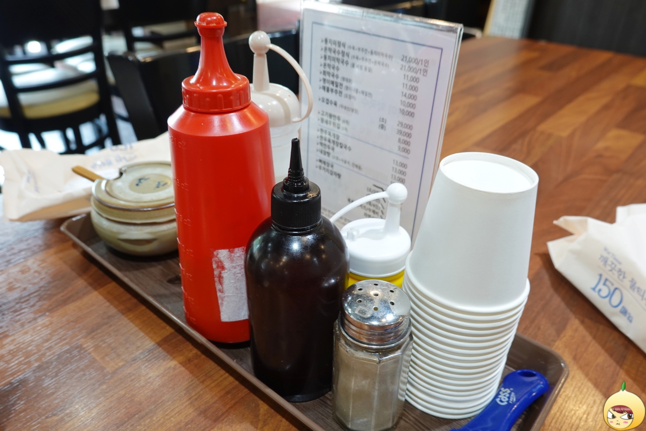 그때 눈에 들어온 안내문. 오호~ 물도 먹고, 비빔도 먹고 하이브리드가 가능하다. 물과 달리 비빔은 양념을 더 추가해야 하니, 물로 시작해서 비빔으로 끝내야겠다.