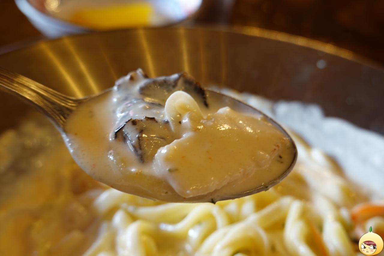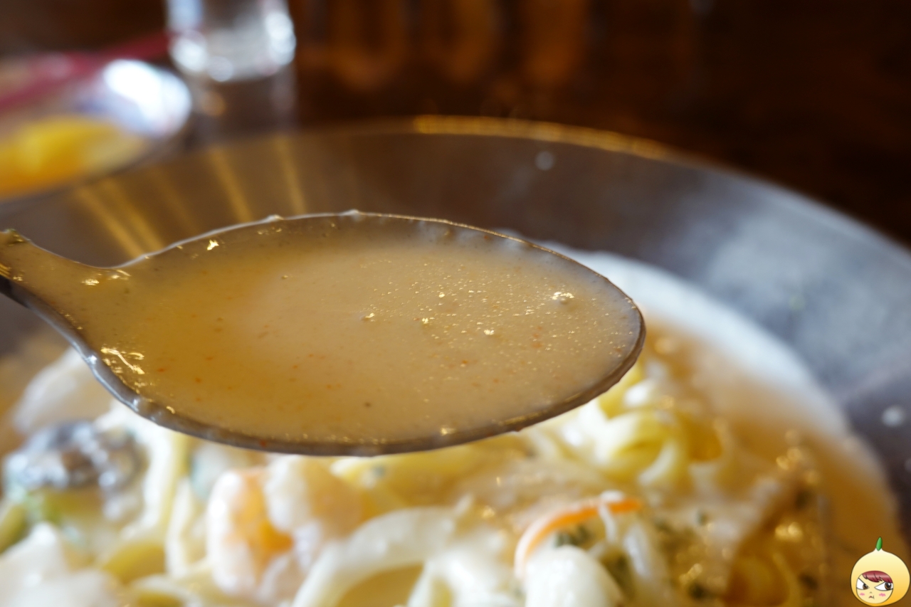 국물이라 불러도 될 정도로 소스가 양도 많고 걸쭉하다. 메뉴판에는 웍에 볶은 야채와 면이 어우려저 불향이 깊게 들어갔다고 했는데, 후각과 미각을 총동원했지만 불향은 좀 아쉬웠다. 대신, 국물이 그득해서 크림소스를 원 없이 즐겼다.
