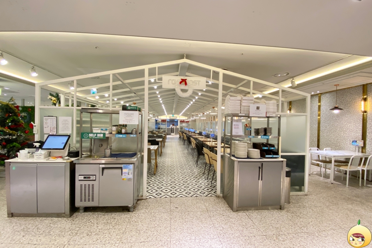 입구 사진에서 알 수 있듯, 라라코스트는 겁나 넓다. 셀프바 뒤와 그 옆으로 먹는 공간이 있으며, 뒤를 돌면 공간이 또 나온다. 11시 오픈인데, 11시 1분에 들어갔다는 거, 안 비밀이다. 사실 10분 전에 도착해서, 화장실에서 잠시 시간을 보낸 후에 들어갔다.