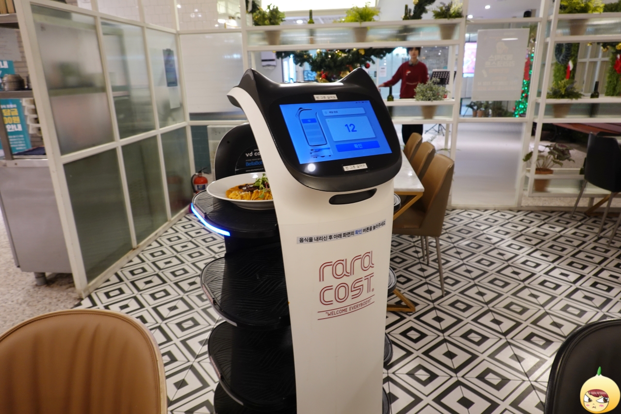 직원이 있긴 하지만, 음식은 서빙로봇이 가져다 준다. 음식을 옮길 손이 없으니, 도착하면 직접 가져와야 한다. 그리고 확인을 터치해야 원래 자리로 돌아간다. 멋모르고 확인을 먼저 눌렀다가, 쌩하고 갈 수 있으니 조심해야 한다.