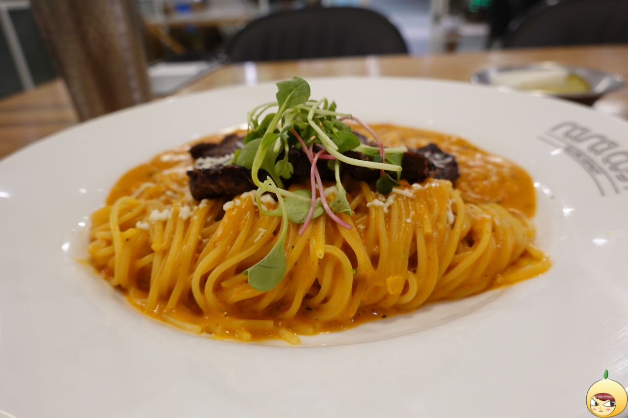 스테이크 로제파스타는 부채살 스테이크가 올라간 로제파스타라고 메뉴판에 나와있다. 개인적으로 크림이면 더 좋았을 테지만, 이것도 충분히 만족이다. 왜냐하면, 둘을 다 먹을 수 있으니깐.