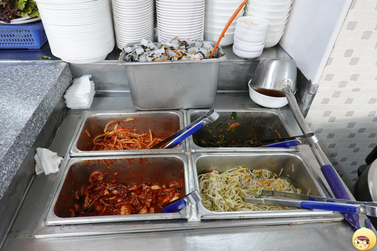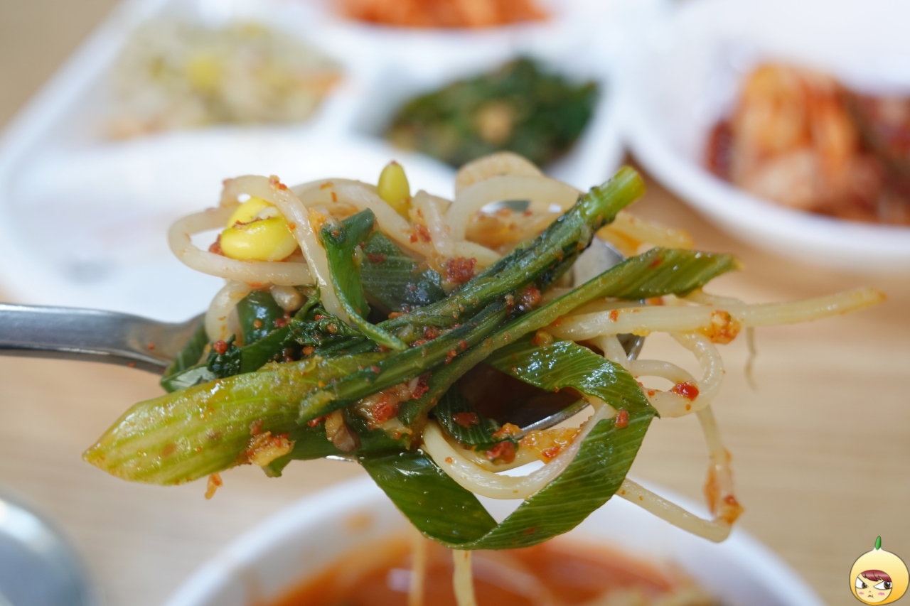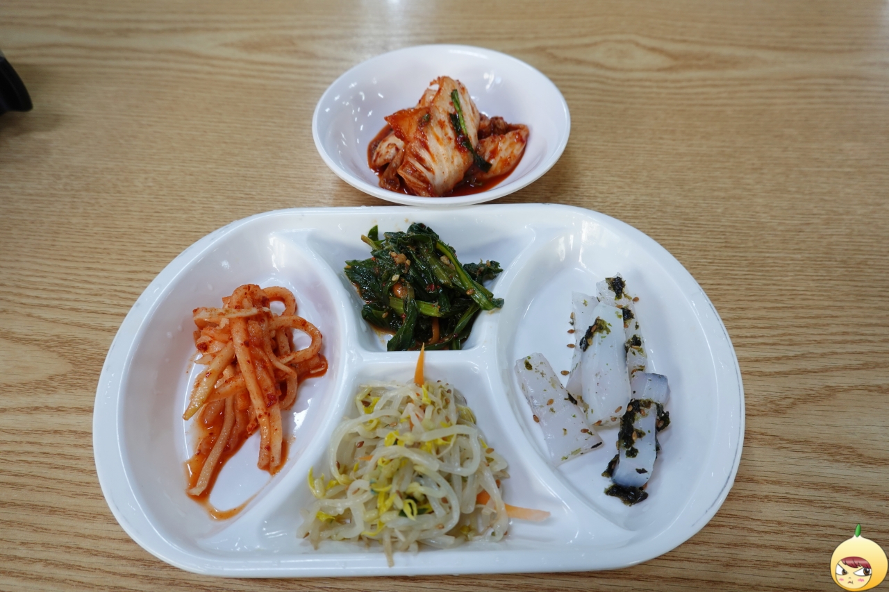 반찬은 아삭한 무생채와 숙주나물, 김맛 가득한 청포묵무침이 나왔다. 숙주나물 위에 있는 초록반찬은 무슨 나물 같은데 후각을 잃어버려서 모르겠다. 마지막 반찬은 배추 겉절이다.