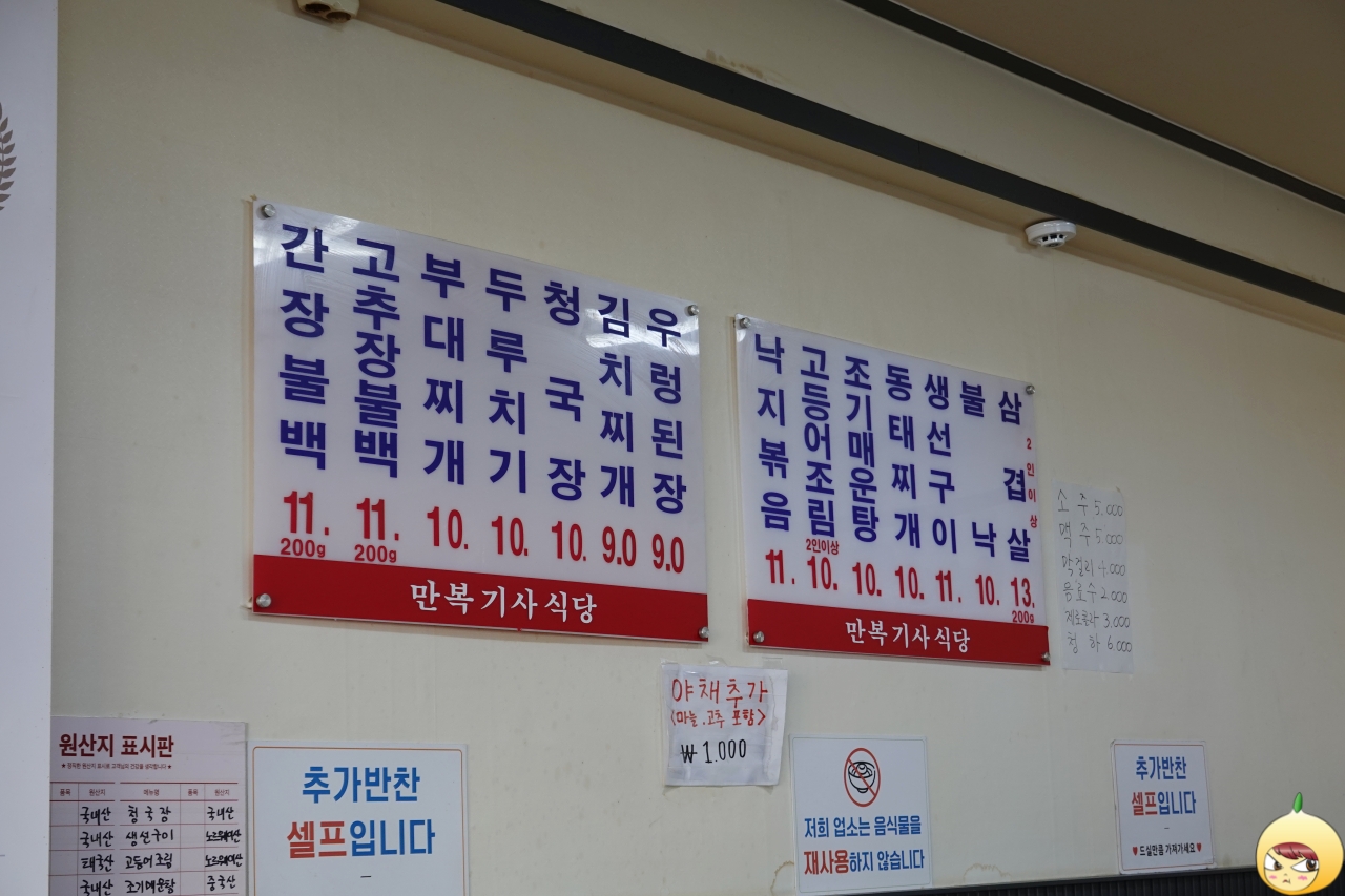 기사식당이라서 브레이크타임이 없는 줄 알았는데 있다. 오후 3시 30분부터 4시까지는 잠시 문을 닫는다. 참, 오픈은 새벽 4시 30분이다.