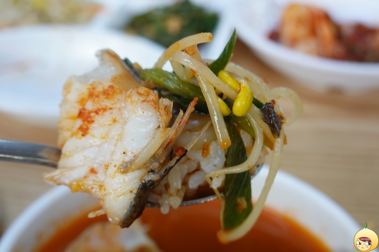 가시가 있어 밥을 말지 않고 국물에 적신다. 여기에 채소와 동태살을 올리면 가장 완벽한 한숟갈이다. 밥을 더하니 짠맛은 옅어지고 감칠맛이 쓰윽 올라온다. 후각은 잃었지만, 포기하지 않고 폭풍흡입에 돌입했다.