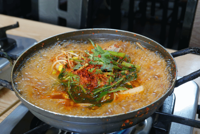 대가리는 잘라서 반만 들어가 있고, 몸통은 2개가 들어있다. 무와 콩나물, 미나리 등 채소도 있다. 여기에 두부와 내장이 있으면 더 좋았을 테지만, 지금도 충분히 만족이다.