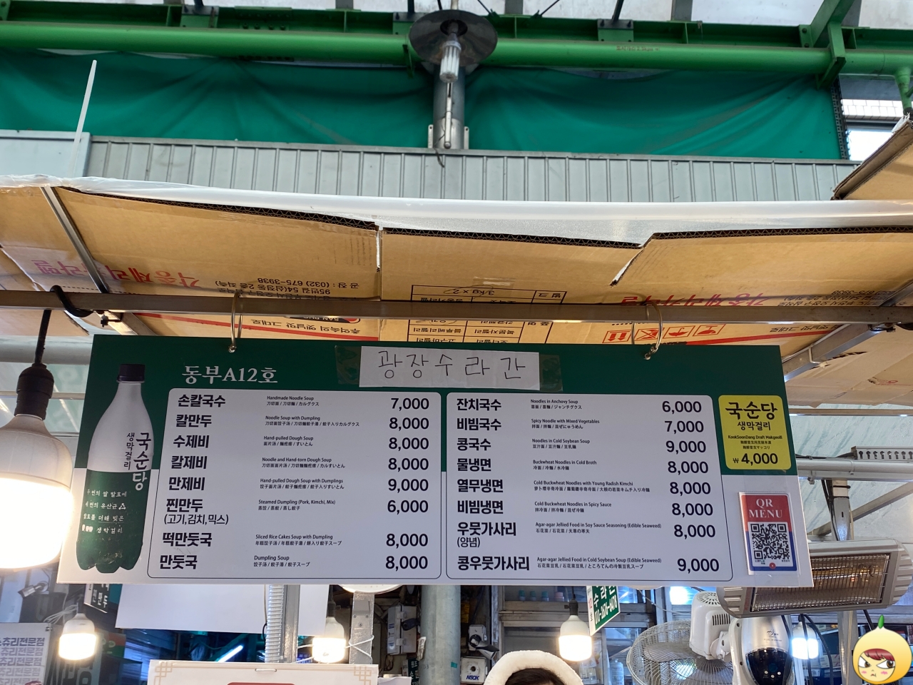 붕어빵 2개로 점심을 끝내기에는 많이 부족하다. 원래는 넷플릭스에 나온 고향손칼국수에 가려고 했는데, 월요일은 휴무다. 어디를 가야 하나 주변을 서성거리고 있는데, 웬 한복? 처음에는 관광객인 줄 알았는데, 아니다. 특색 있는 복장과 광장수라간이라는 이름에 끌려 어느새 엉뜨의자에 앉았다.