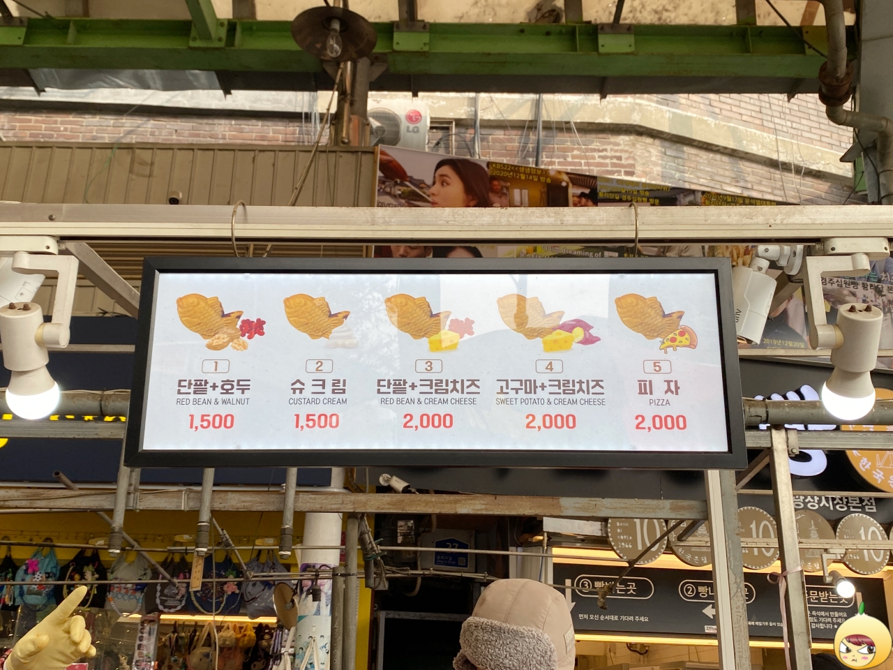 단팥 더하기 크림치즈인데 여기에 숨은 조력자가 있다. 그건 바로 호두이다. 고로, 단팥+호두에 크림치즈가 더해졌다. 먹는 위치에 따라, 맛이 달라진다는 거, 안 비밀이다. 먹고 나니 왜 명물인지 충분히 알겠다. 피자를 주문하는 사람들이 많던데, 피자 붕어빵은 선뜻 내키지 않는다.