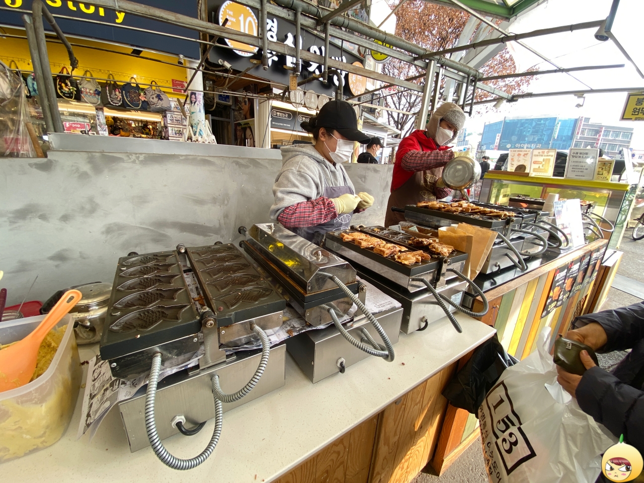 붕어빵에 수제비까지 먹었기에 꽈배기는 스치듯 지나치려고 했다. 그런데 줄 서서 기다리는 사람들이 없다. 역시 추우니 아무리 명물이라고 해도 사람이 없구나 하면서, 어느새 저 앞에 섰다.