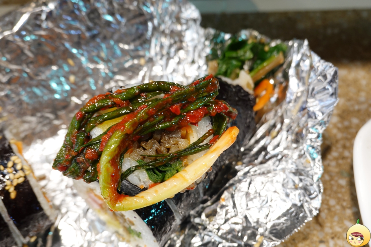 옥이네김밥의 야채김밥은 와~ 대박은 아니지만, 가격대비 만족도가 높은 김밥이다. 우엉이 많이 들어 있어 집에서 만든 듯한 김밥 같았다. 살짝 심심했는데, 파김치를 더하니 맛이 살아났다. 옥이네와 남원집의 콜라보 대성공!
