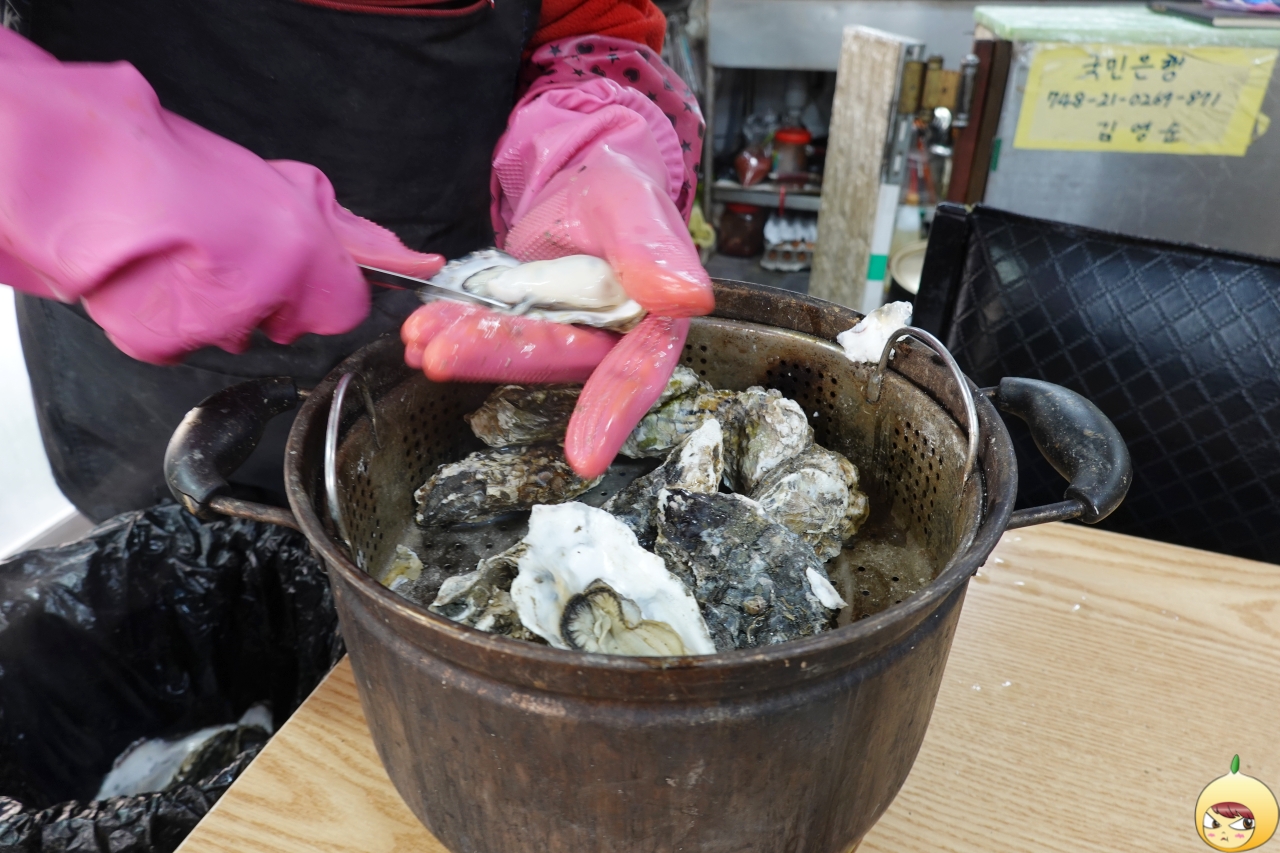1시가 조금 지난 시간이고, 사진에서 보듯 손님은 혼자서 낮술을 하는 어르신뿐이다. 혼자서 먹으려고를 시작으로 술 없이 어떻게 먹어, 여기는 어케 알고 왔어 등등 주인장의 질문은 계속 됐다. 왜냐하면, 어미새가 아기새에게 밥을 주듯, 석화를 직접 까서 주다 보니, 질문은 꼬리에 꼬리를 물고 이어졌다. 이렇게 안 해줘도 된다고 하니, 바쁘면 절대 안 해주는데 지금은 무지 한가하니 해준단다.