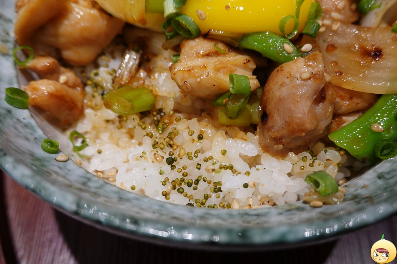 밥에도 알덴테라는 표현을 해도 되는지 모르겠지만, 덜 익었나 싶을 정도로 밥이 겁나 고슬고슬하다. 진밥이라면 내용물과 양념으로 인해 무너졌을 텐데, 고두밥이라서 마지막까지 밥알이 살아있나 보다. 암튼, 밥알이 하나하나 다 느껴지는 밥에 간장으로 인해 단맛이 도는 닭고기와 채소를 올리면, 닭고기덮밥 한입만 완성이다. 맵지 않은 꽈리고추에 기분 좋은 단맛을 주는 양파까지 완전 내스탈이야~