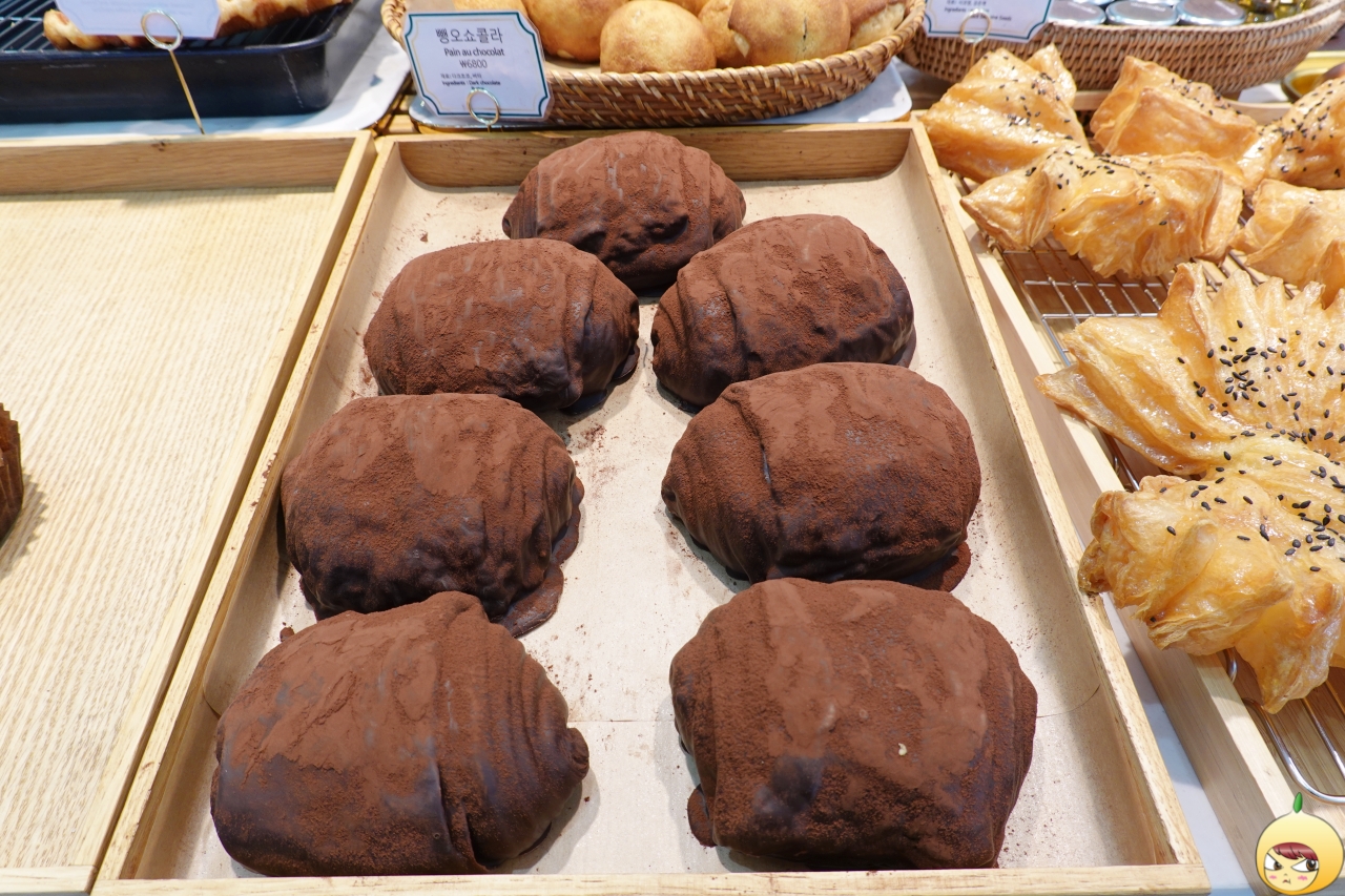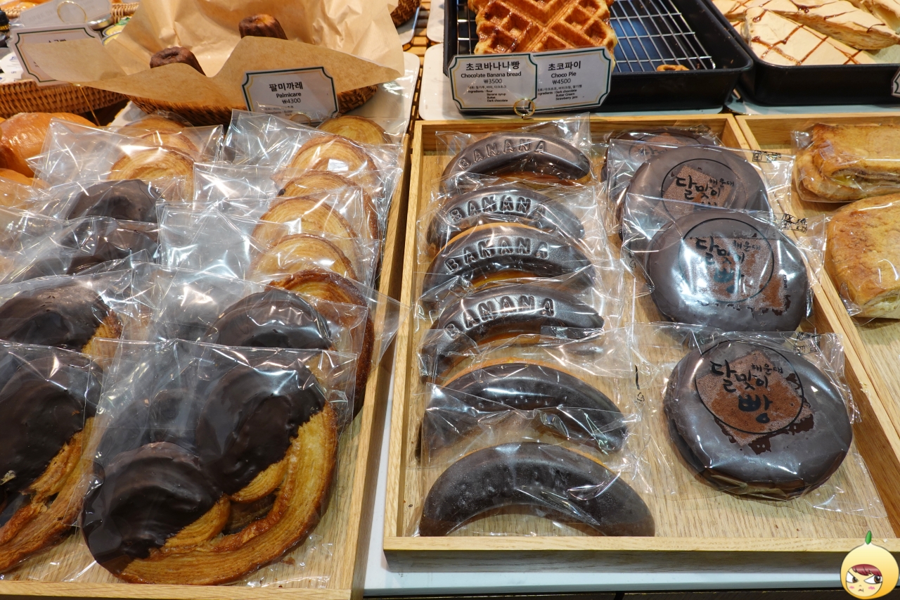푸딩 종류도 많았는데, 딱히 끌리지 않아 담지 않았다. 해운대달맞이빵의 시그니처는 달맞이빵이 아닐까? 그냥 혼자만의 생각이다. 사진을 찍은 후에도 어떤 빵을 골라야 하는지, 3~4번은 왔다 갔다 했다. 야끼소바빵이 먹고 싶었으나, 밥을 먹고 디저트를 먹기 위해 온 거라서 부담 없는 빵으로 골랐다. 트로피컬 크로플은 아니 먹을 수 없는 모양새이나, 12,900원이라는 가격표를 보고, 이건 남돈남산이로구나 했다.