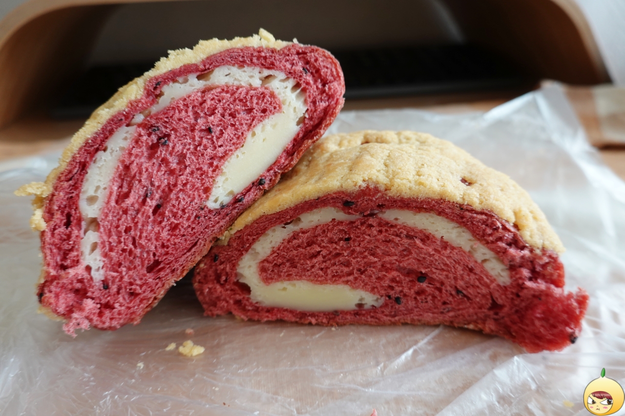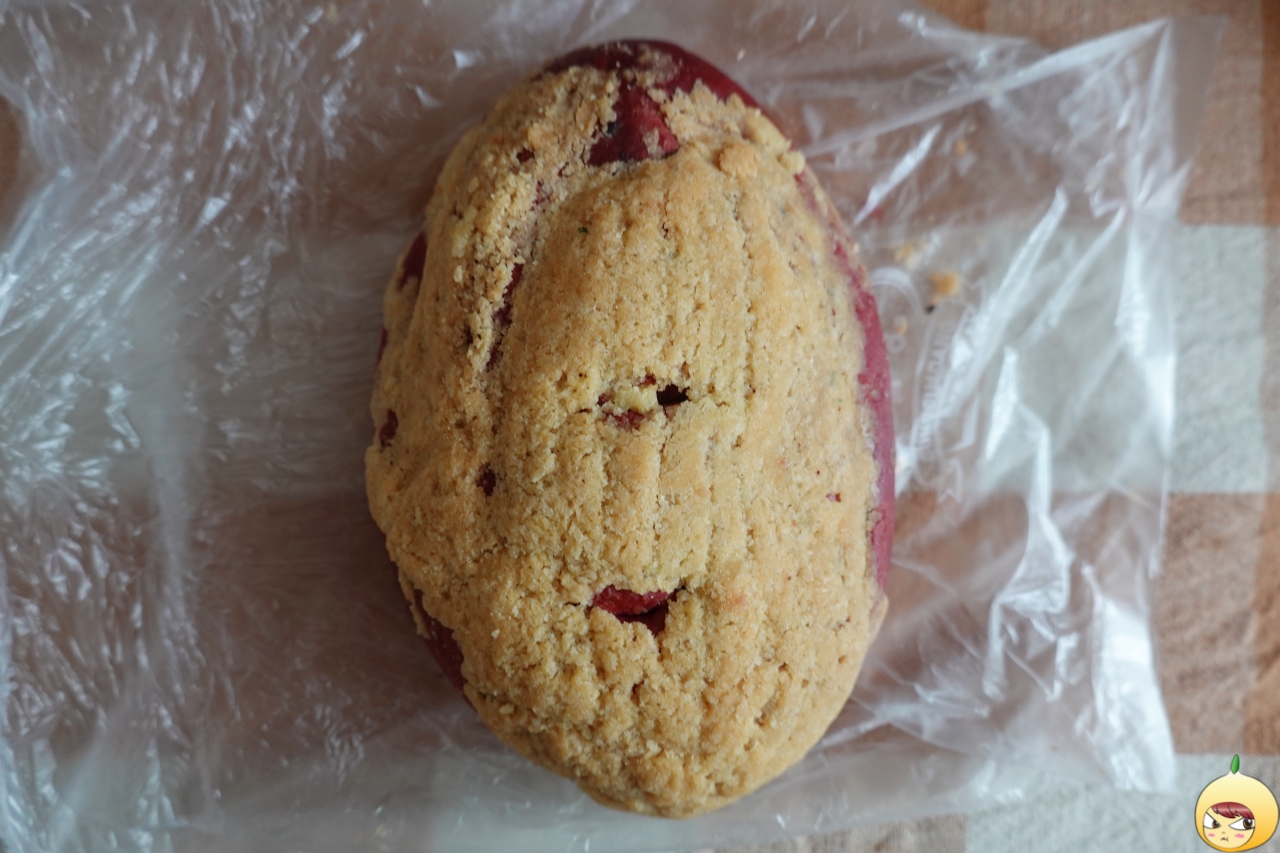 토요빵(3,800원)은 자색 고구마의 달콤한 맛과 타피오카의 쫀득한 식감이 조화로운 빵이다. 표면은 달달 바삭한 옥수수가루와 연유로 만든 소보로가 코딩되어 있어 크런키하고, 속에는 쫀득하고 쫄깃한 타피오카가 들어 있다고 성심몰에 나와 있다.