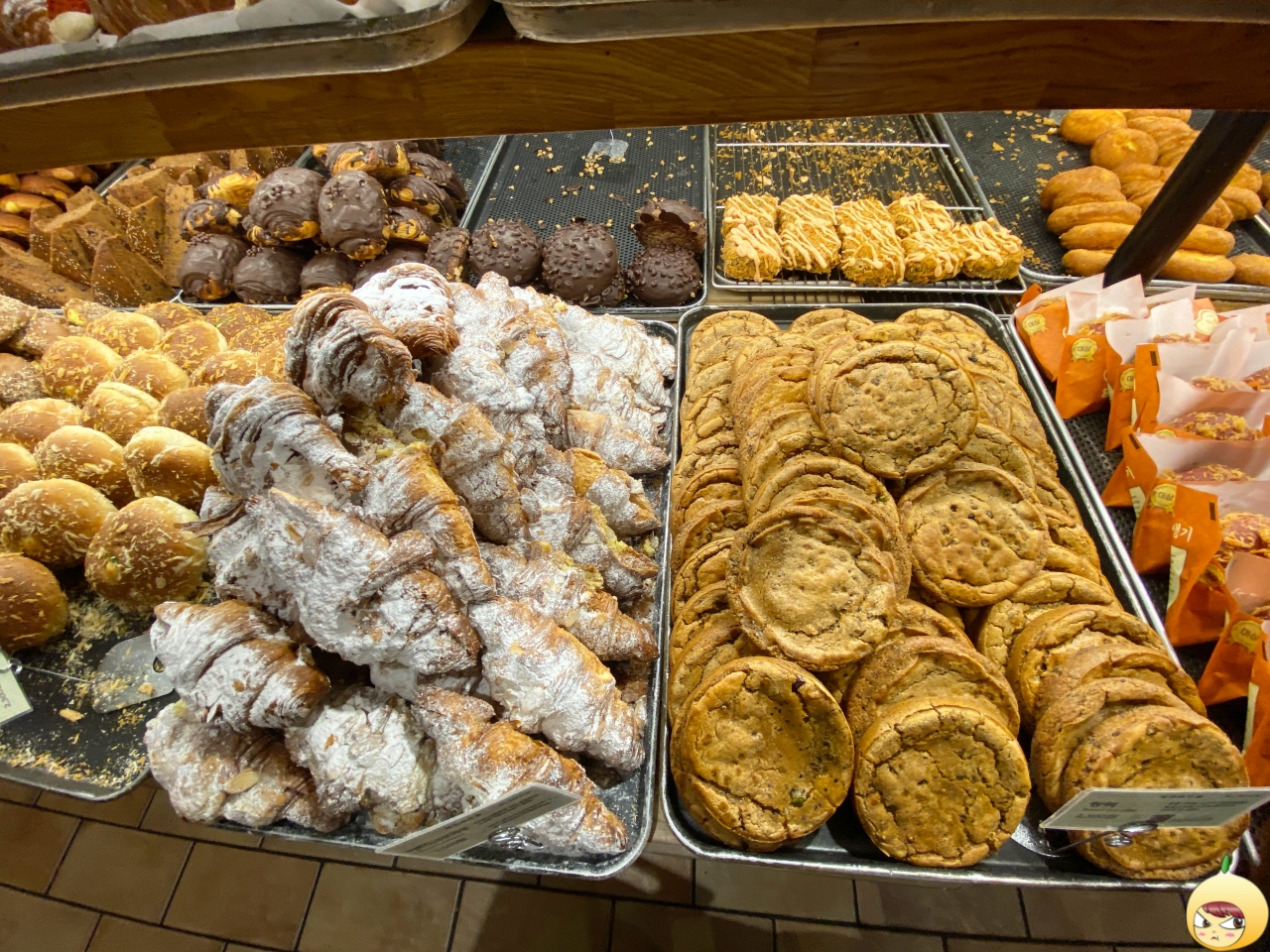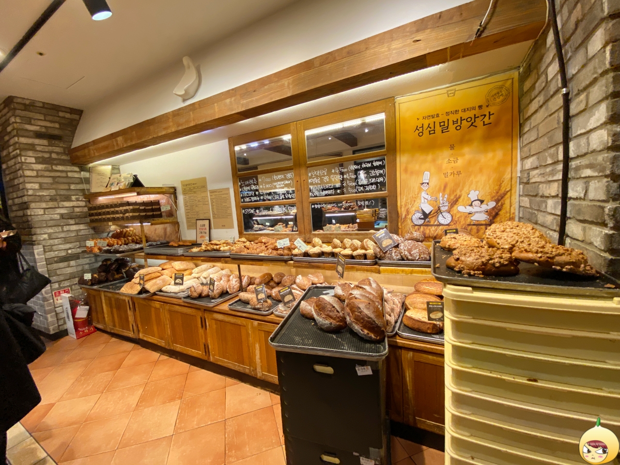 계단과 입구는 한산했지만, 안으로 들어오니 널널까지는 아닌데 살짝 붐빈다. 원래는 하이엔드 카메라를 들고 다니면서 사진부터 찍고 빵을 담으려고 했다. 그런데 계산대의 긴 줄을 보고 난 후, 어른폰 11로 찍으면서 먹고 싶은 빵도 동시에 골랐다.