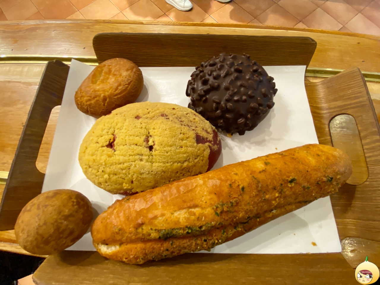 애플파이, 플레인과 소금 크루아상은 위층이고, 반할번과 크림치즈화이트번(명예의 전당) 그리고 팡오레는 아래층에 있는 빵이다. 사진 찍을 여유가 있다면, 빵과 이름표를 제대로 찍었을 거다. 하지만, 주변에 피해를 주면 안 되기도 하고, 쟁반을 들고 있어 후다닥 빵만 찍었다. 그런데 이름은 어떻게 알았냐? 사진을 겁나 확대해서 이름표를 확인했어요~