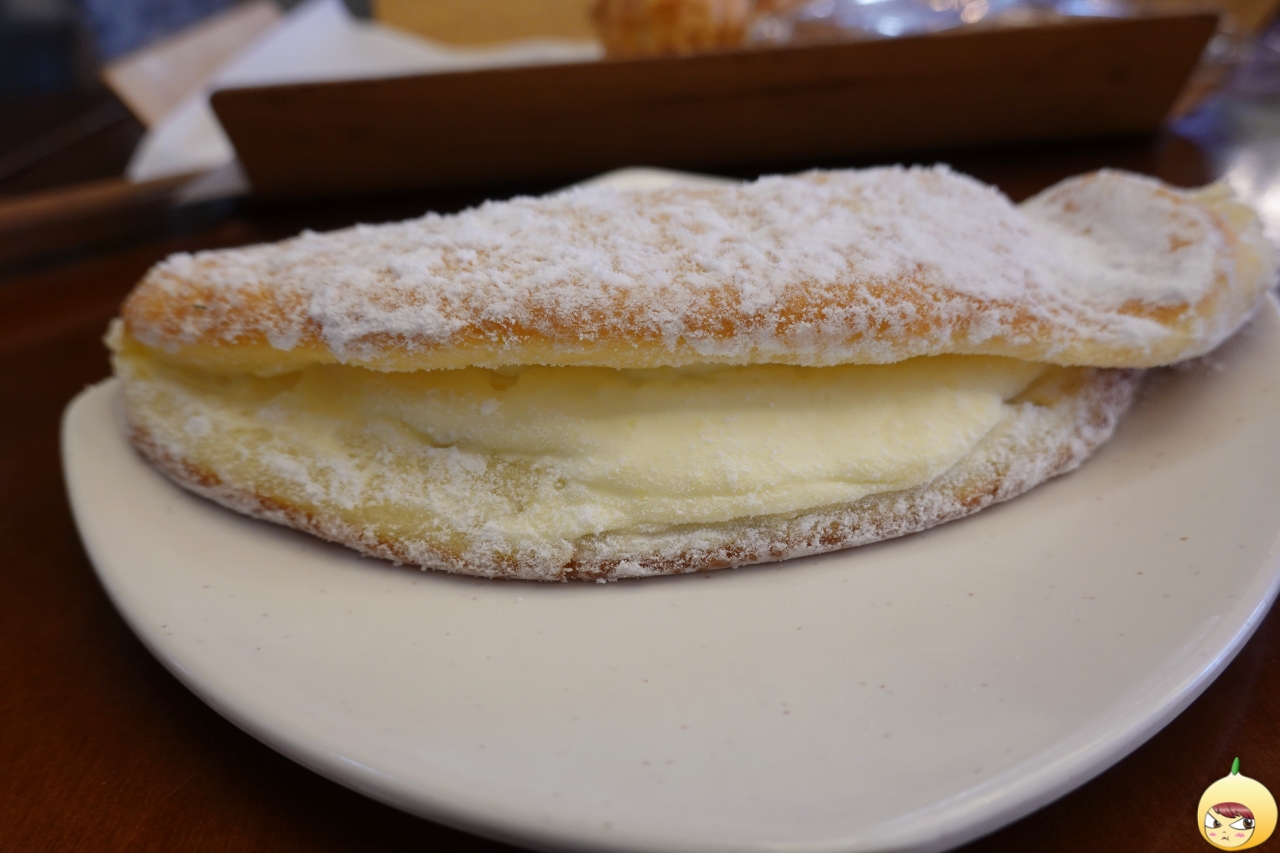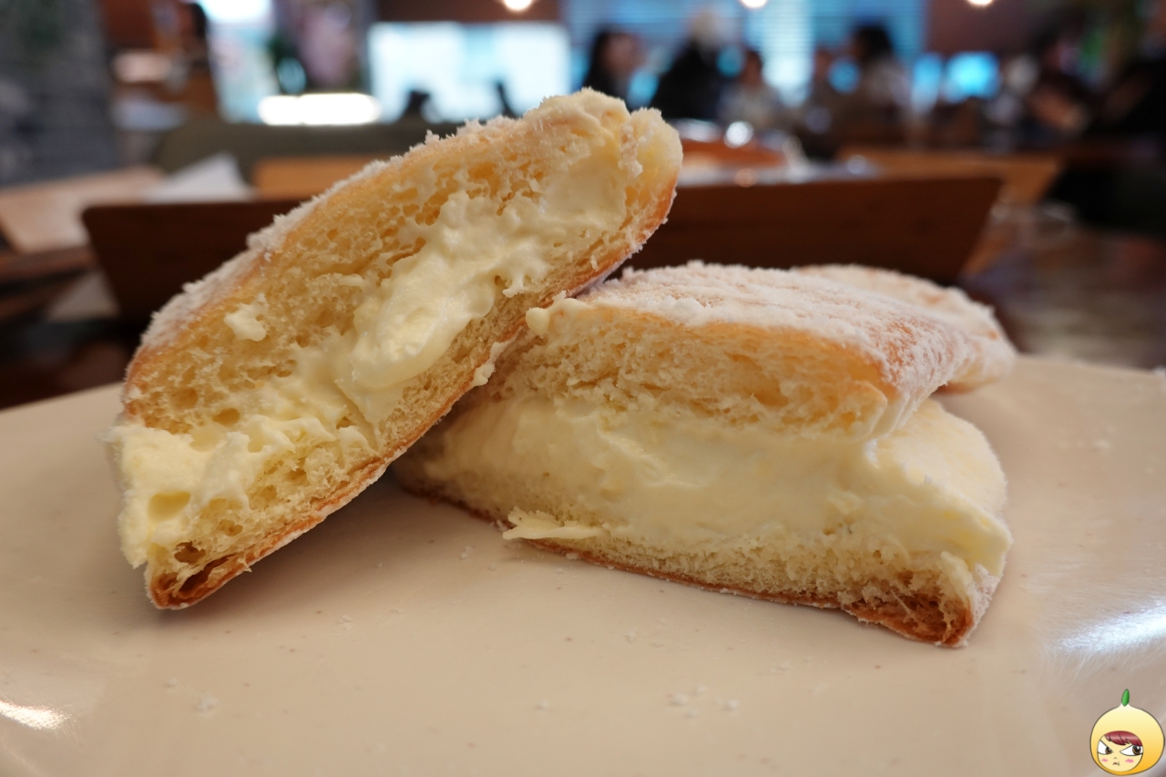 우유크림도넛(4,800원)은 도넛치고는 가격이 살짝 사악하지만, 베스트 메뉴이자 거대해서 골랐다. 부드러운 빵에 우유크림이 듬뿍 들어있다. 우아하게 한 입 크기로 칼질을 하려고 했는데, 자꾸만 크림이 삐져나오는 바람에 포기했다. 도넛 자체가 부드럽다 보니, 입안 가득 먹어도 목이 막히거나 불편함 없이 목넘김이 편하다.
