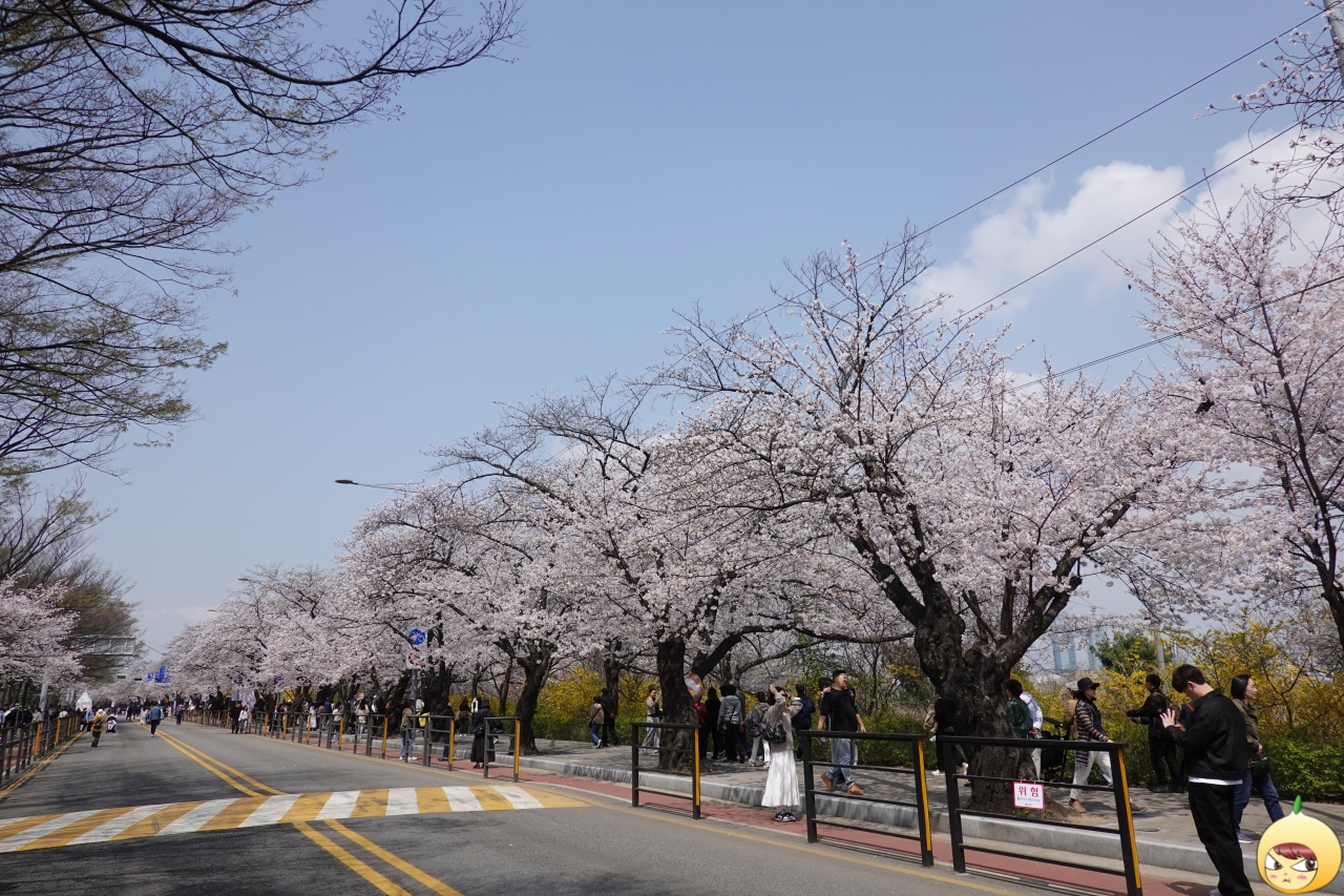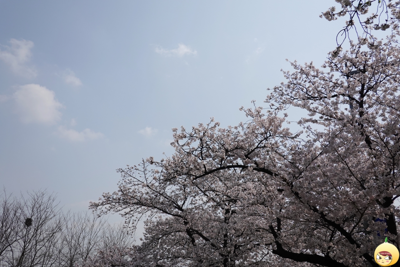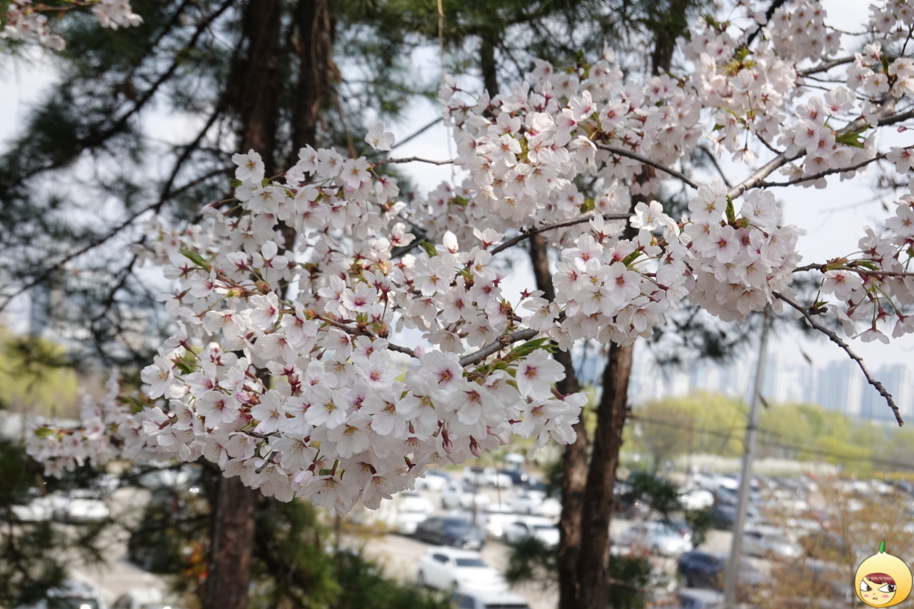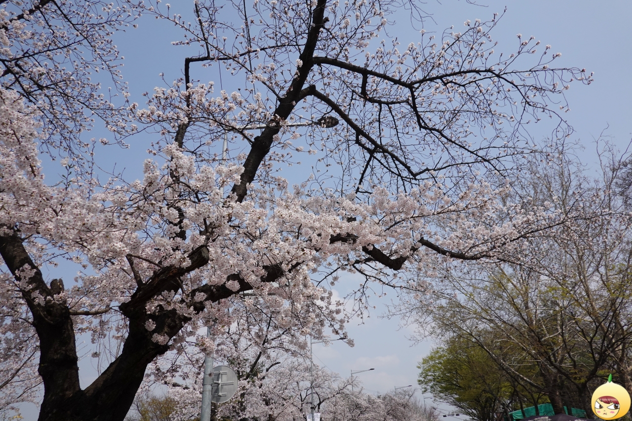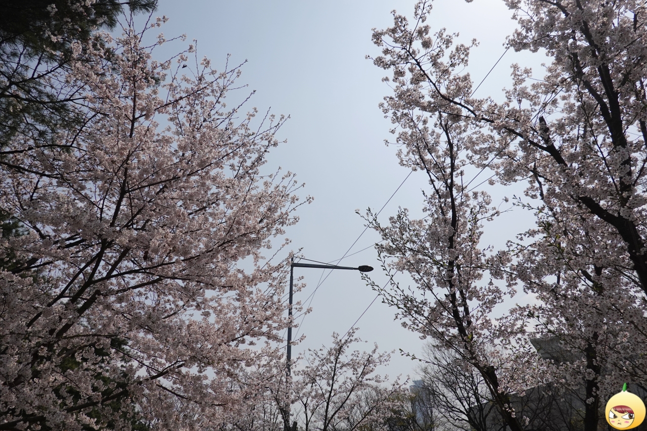 미세먼지가 있긴 했지만, 눈으로 봤을 때는 푸른 하늘이었다. 그런데 사진으로 보니, 살짝 흐린 듯. 그래도 괜찮다. 제약이나 강압 없이 자유롭게 벚꽃을 볼 수 있으니깐.
