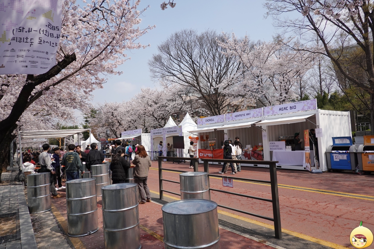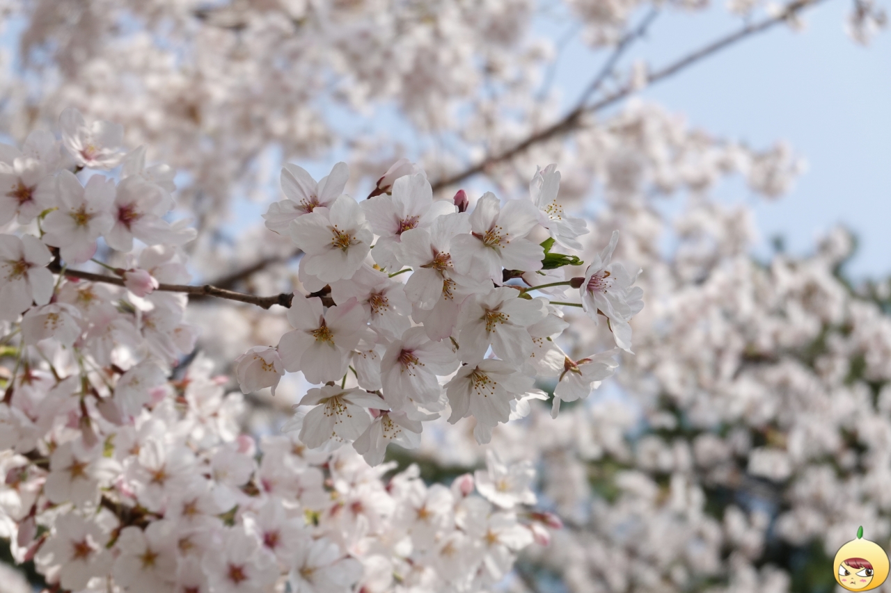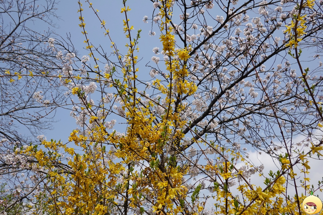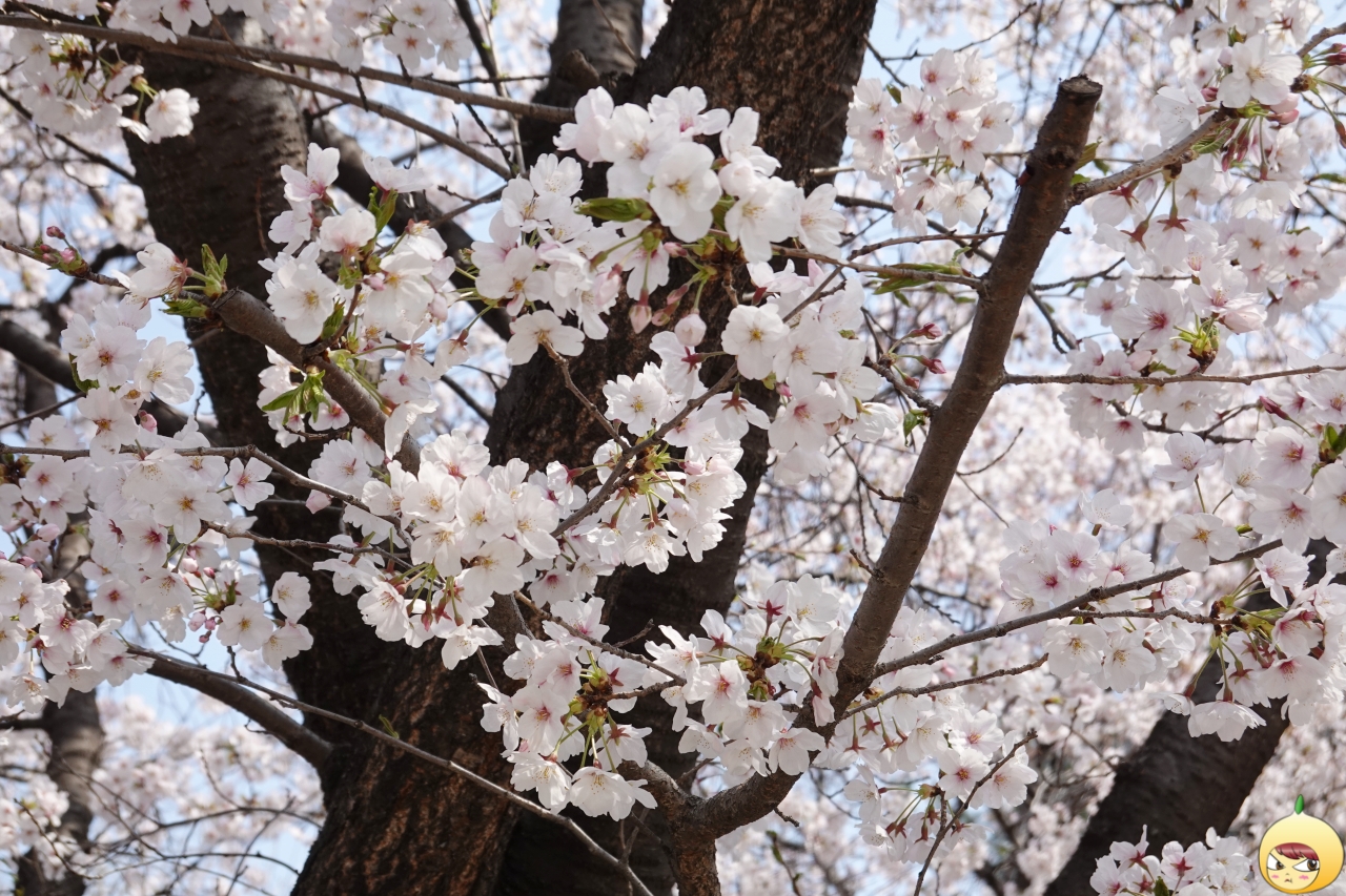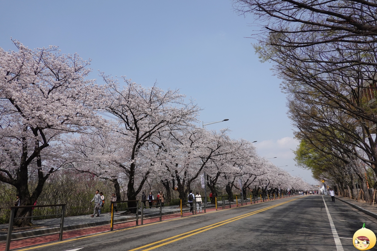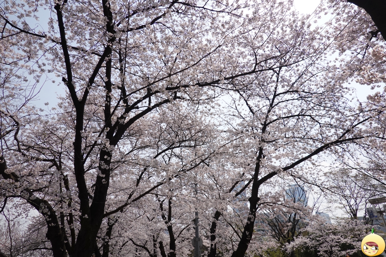 미세먼지가 있긴 했지만, 눈으로 봤을 때는 푸른 하늘이었다. 그런데 사진으로 보니, 살짝 흐린 듯. 그래도 괜찮다. 제약이나 강압 없이 자유롭게 벚꽃을 볼 수 있으니깐.