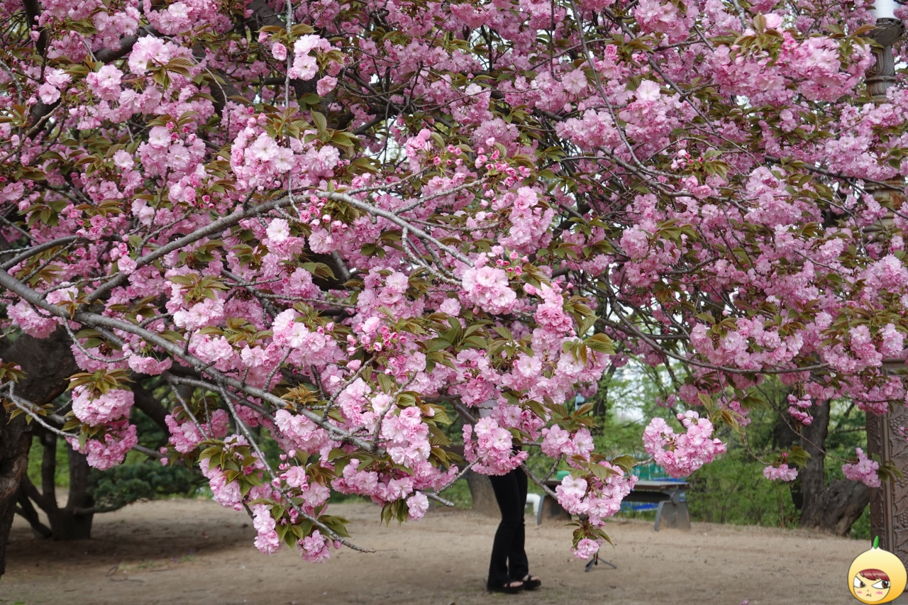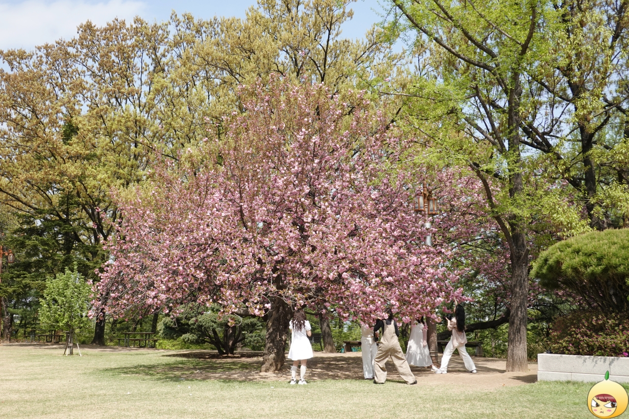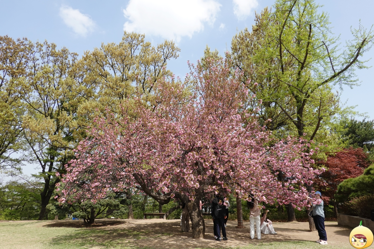 빙산의 일각처럼, 원래는 키가 큰 겹벚나무인데, 다 땅에 묻혀 있는 건가? 다른 겹벚나무와 달리, 유독 이 녀석만 눈높이가 딱 맞는다. 그러다 보니, 여기만 사람이 바글바글하다. 작년에도 그러더니, 올해도 역시 인생사진을 남기기 위해 온 사람들이 있다.