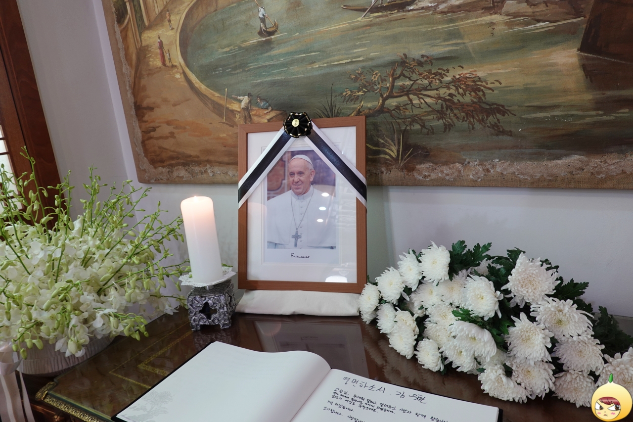 칠궁에 가지 않았더라면 주한 교황청 대사관의 존재를 몰랐을 거다. 4월 24일에 방문하지 않았더라며 조문할 기회조차 놓쳤을 거다. 방명록은 뭐라고 써야 할지 몰라 묵례만 하고 나왔지만, 조문객에게 나눠주는 포토카드는 고이고이 간직하고 싶어 챙겼다.