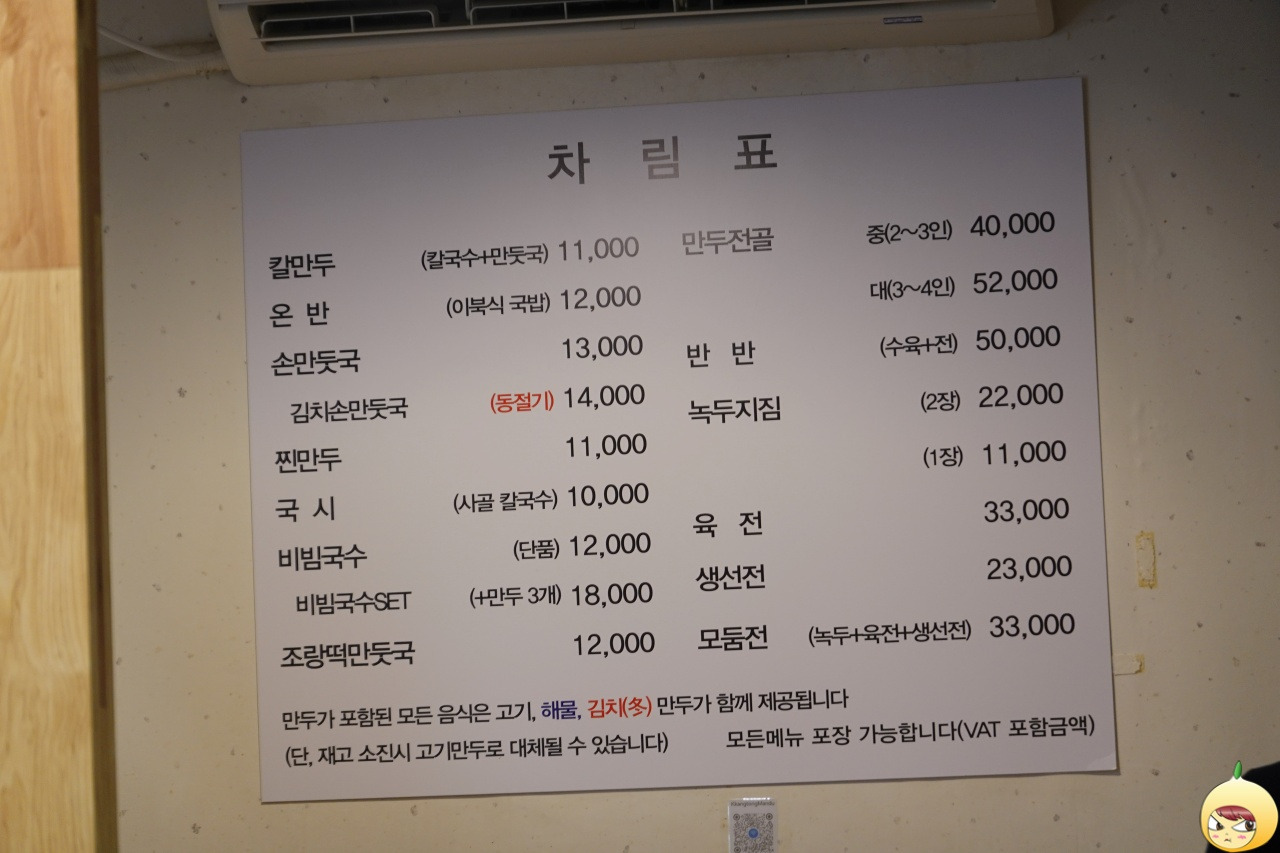 메뉴판 역시 지난 사진 재활용이다. 그때는 손만둣국을 먹었는데, 6개가 들어있는 왕만두를 혼자서 먹으려니 벅차다. 참고로, 남기면 나만 손해라 다 먹었다가 배탈이 났다는 거, 쉿! 비밀이다. 그런 경험이 있어도 만두는 포기할 수 없기에, 만두와 베스트 메뉴를 같이 먹을 수 있는 비빔국수세트(18,000원)를 주문했다.