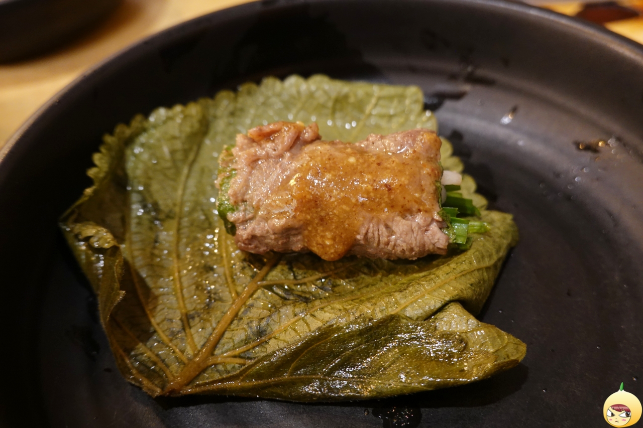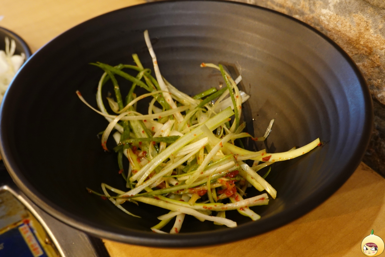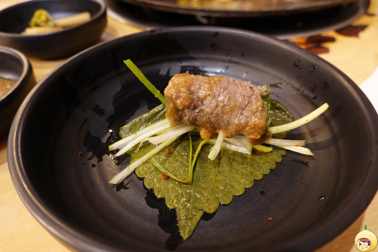 고기 안에는 쪽파, 깻잎, 부추가 들어있다. 고기의 열기로 채소가 익어서 아삭함은 살아있고, 각각의 채소가 갖고 있는 풍미가 더해져 산뜻하다.