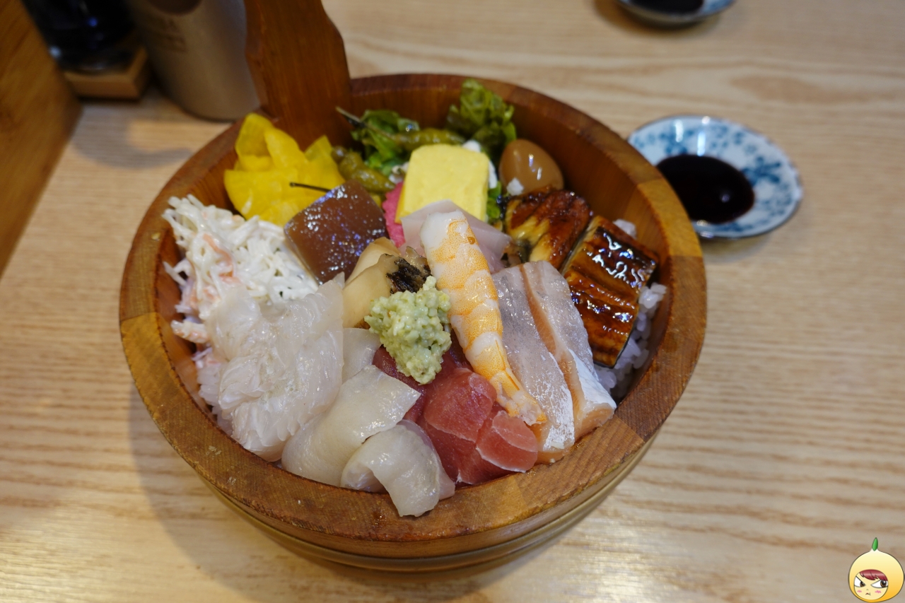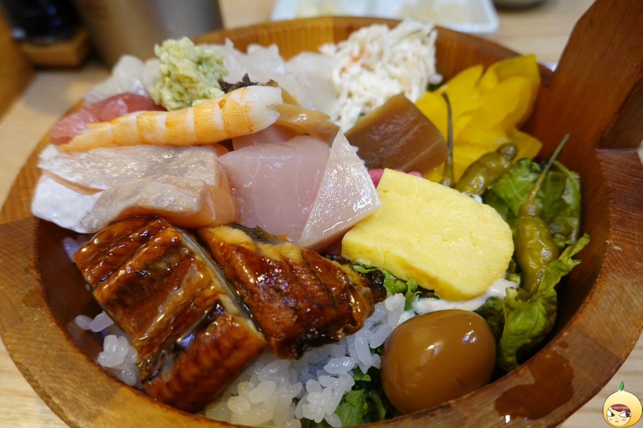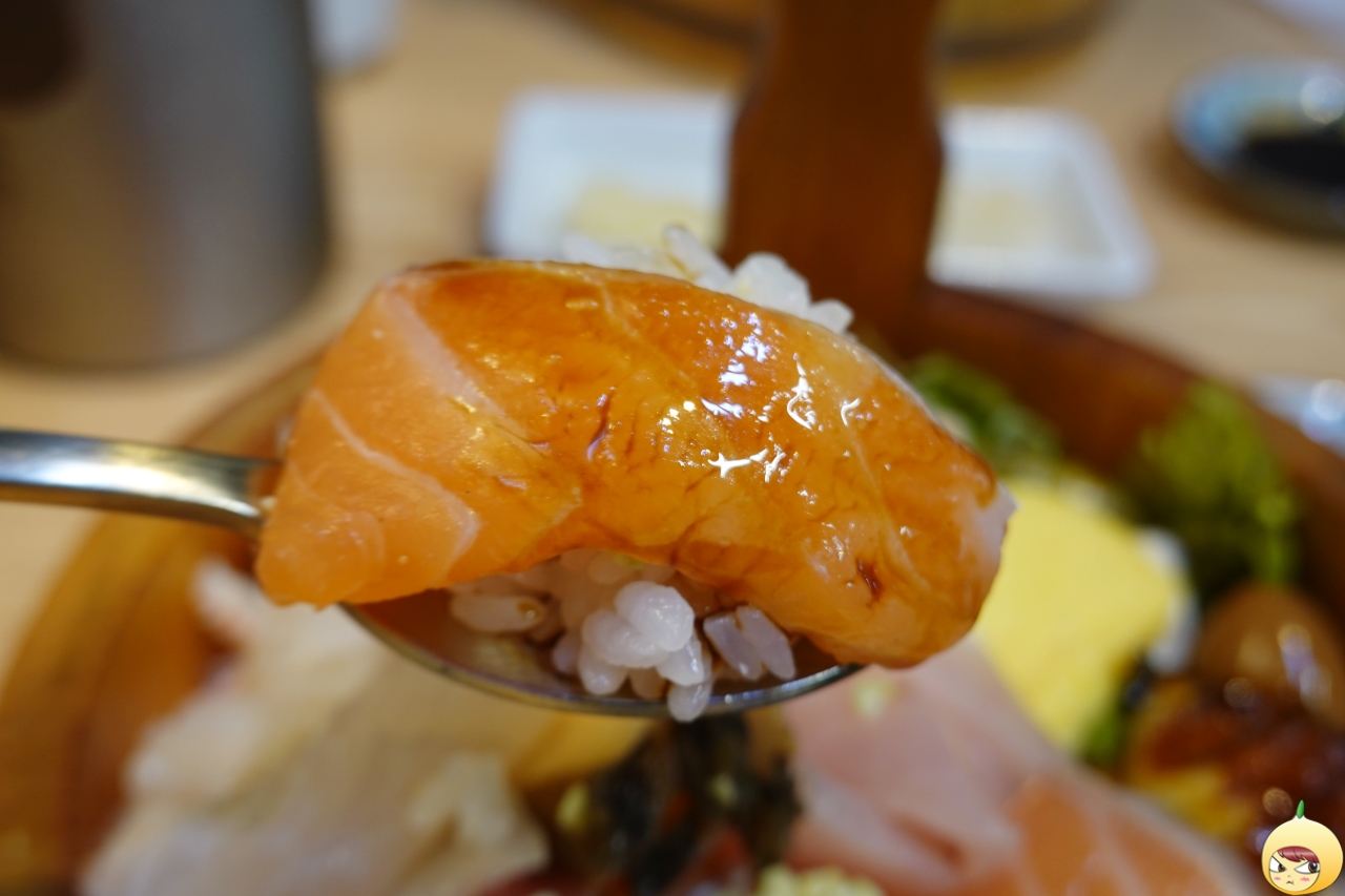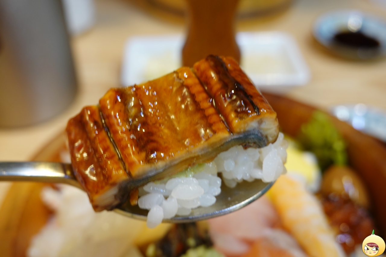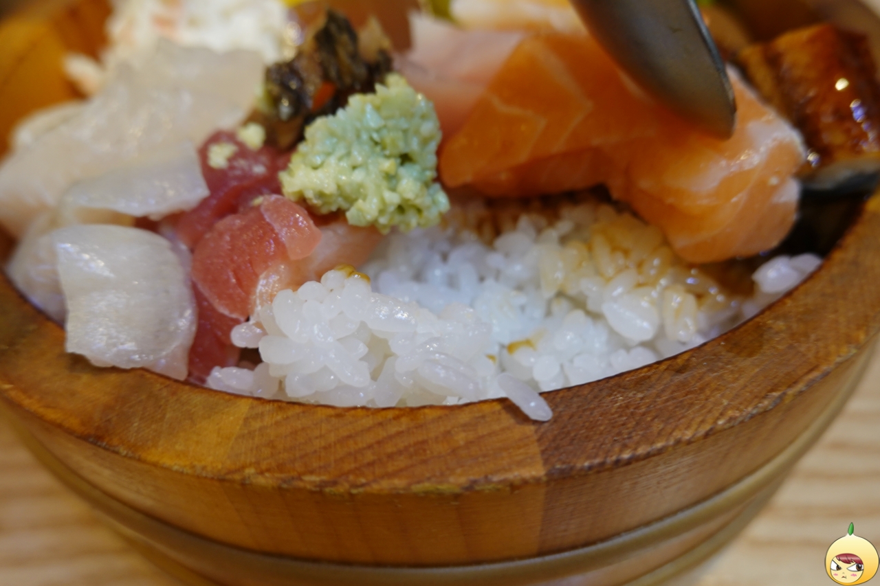 그리고 장어, 계란에, 연어 그리고 밥은 아래에 숨어있다. 간장 종지가 작아서 더 크게 보이지만, 실제로 보면 그리 크지 않다. 종류는 엄청 다양한데, 회 크기가 서운하다 싶을 정도로 작다. 도시락 크기에 맞추다 보니 어쩔 수 없었을 테지만, 풍성함은 인정 크기는 아쉽다.