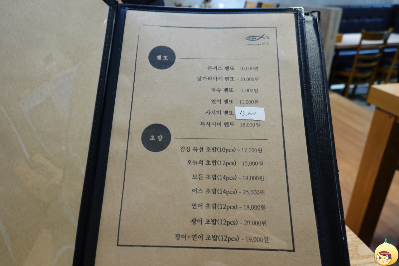 바닷가 도시에 왔는데 비린내(?) 한 번은 맡고 가야 하는 법. 푸짐하게 회를 먹어도 좋겠지만, 산뜻하게 초밥으로 결정했다. 어스에도 회가 있긴 하지만, 회랑 초밥 둘 다 먹을 수 있는 특사시미벤또(18,000원)를 주문했다.