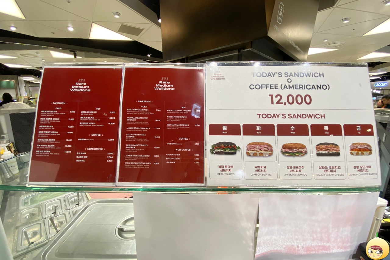 커피만 필요했는데, 세트로 샌드위치까지 먹을 수 있다? 여기에 가격까지 맘에 든다면, 거절할 이유는 전혀 없다. 수요일 세트메뉴는 잠봉프로마쥬 샌드위치 & 커피다. 샌드위치 단품은 13,000원, 커피는 3,500원이지만, 세트로 구입하면 12,000원이다. 매력적인 가격이니 바로 "오늘의 샌드위치와 커피 주세요."