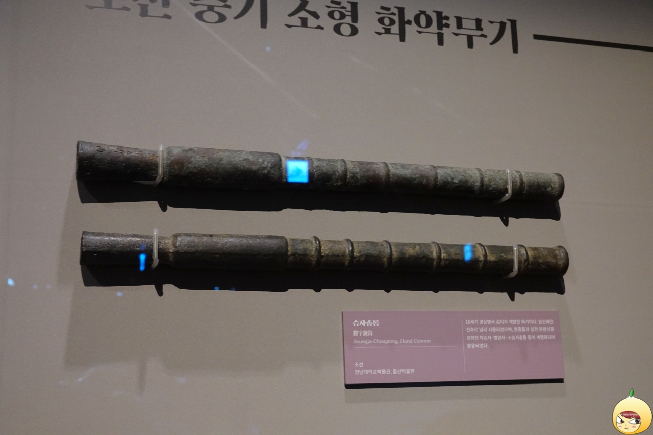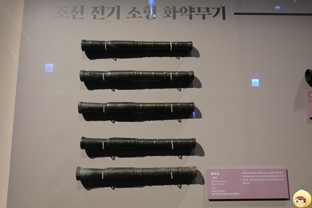조선 수군의 막강한 전투력은 정교하게 구성된 무장과 효율적인 지휘 체계에서 비롯됐다. 특히 화약무기의 적극적인 활용은 해전의 양상을 근본적으로 바꾸었다. 대형 총통은 판옥선과 결합해 바다 위에서 강력한 화력으로 뽐냈으며, 소형 총통과 조총은 빠르고 정확한 타격으로 적을 효과적으로 제압했다. 체계적인 무장과 지휘 역량을 갖춘 수군은 우리 바다를 굳건히 지켜낸 실질적인 힘이었다고 안내문에 나와있다.