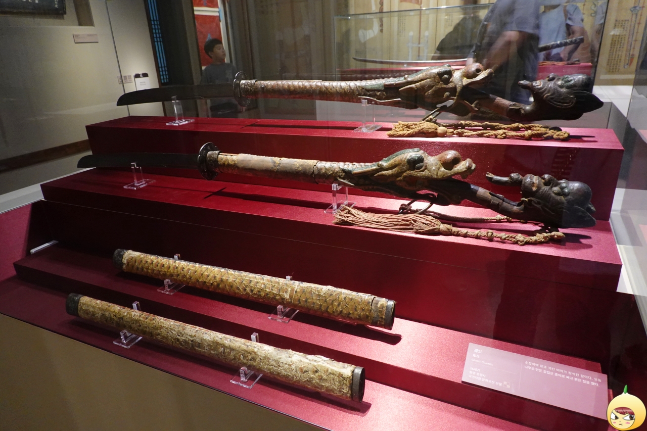 왼쪽 끝 빨간 배경에 있는 검은 칠성검으로 불리는 이익기 보검이다. 임진왜란 당시 전라우도수군절도사를 지낸 이억기 장군이 임금으로부터 하사 받은 검으로 전해진다. 검신 한쪽에는 북두칠성 및 용문양이 새겨져 있으며, 하사보검이라는 명문이 전서체로 음각되어 있다.