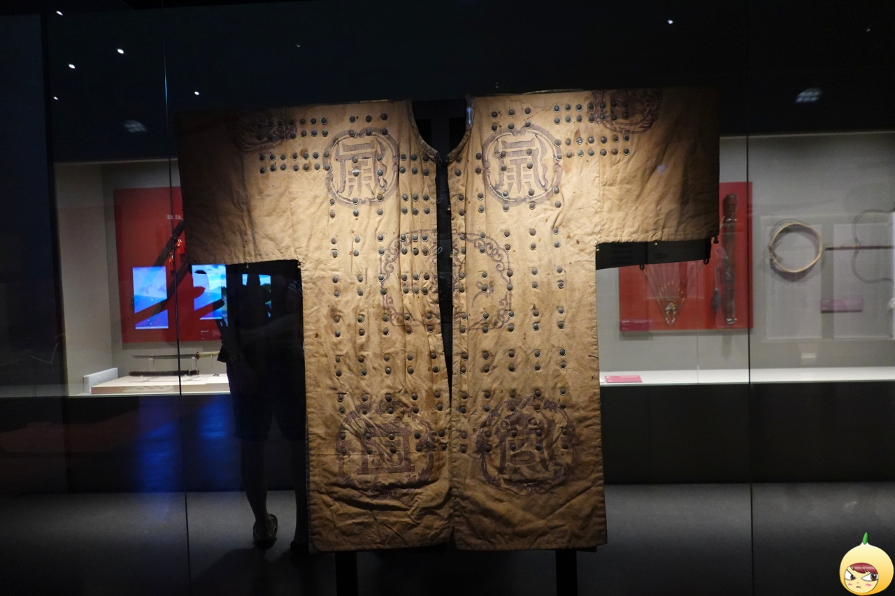 두정갑은 면으로 외피를 만들고 안쪽에 철제 갑옷 미늘을 둥근못으로 고정한 갑옷이다. 바깥면에 부적을 먹으로 찍어 장식했다.